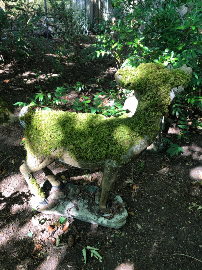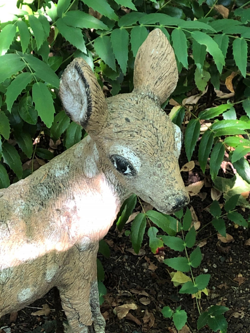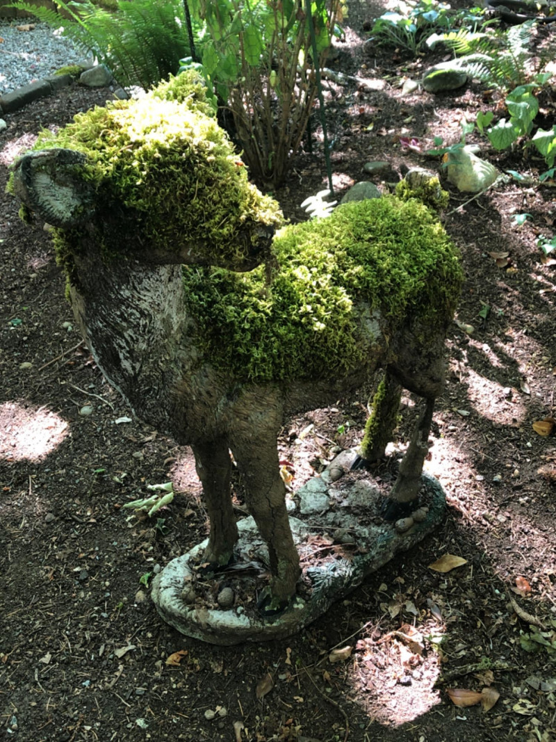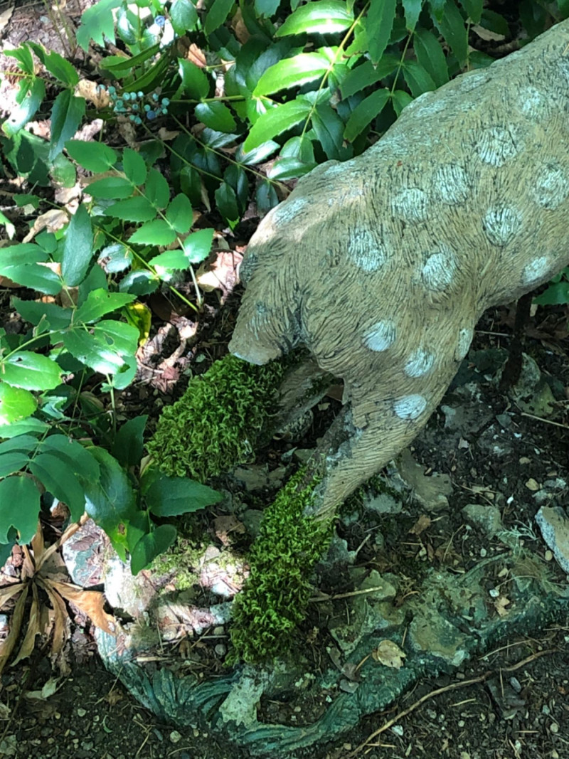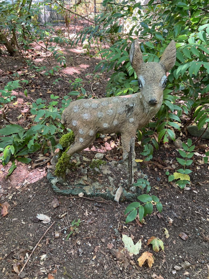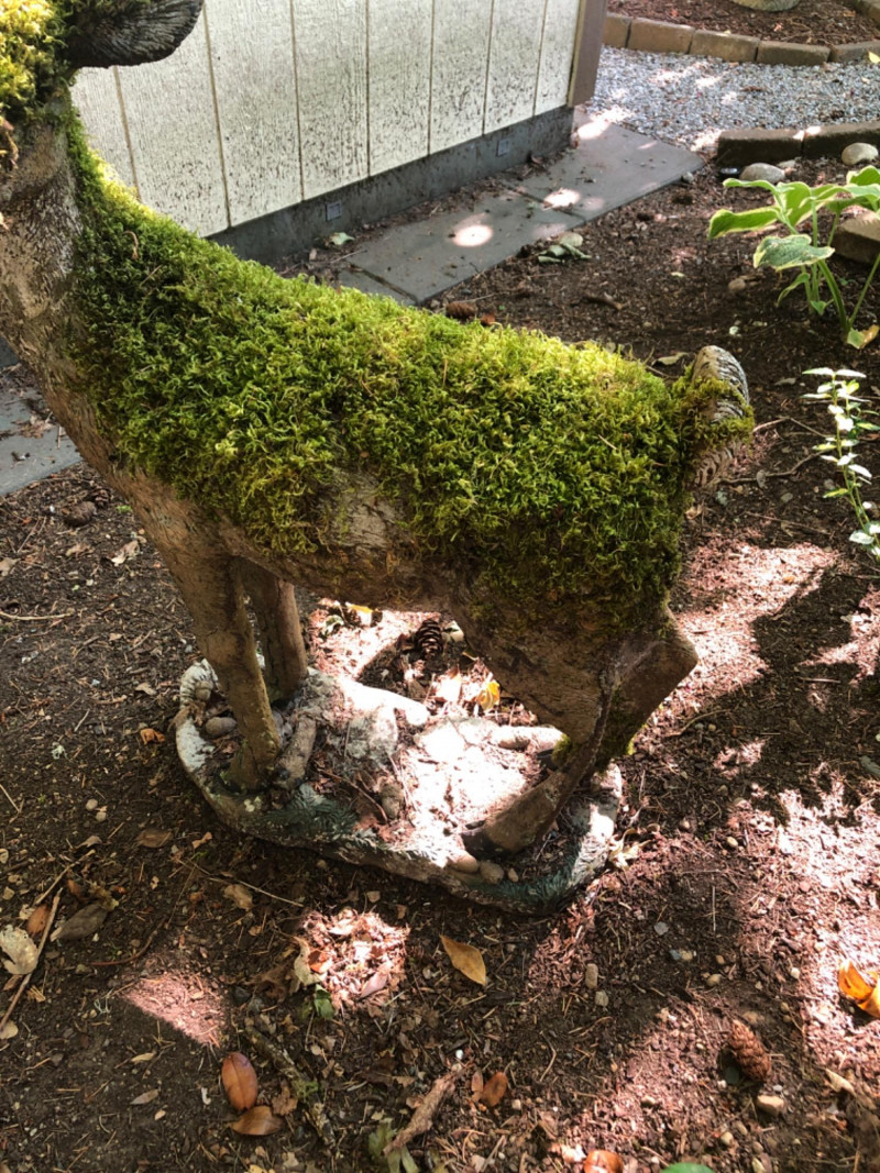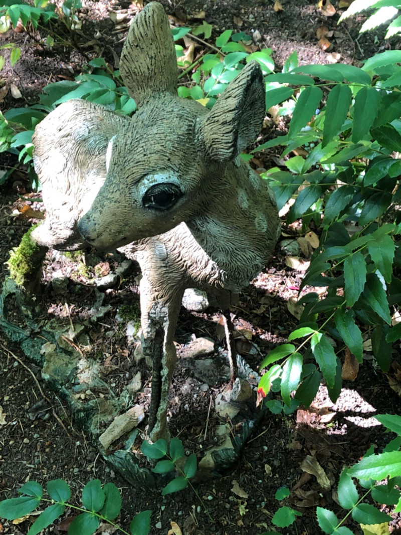 Elegant pair of cement deer sculptures designed for outdoor placement. Detailed forms with serene posture evoke woodland charm and add a peaceful presence to landscaped gardens. Fawn Dimension: 27" high x 20" long x 10" wide Mother Deer with moss cover - Dimension: 35" high x 31" long x 12" wide Friendly Reminder: This auction will start closing at 6:30pm on Tuesday, August 12th