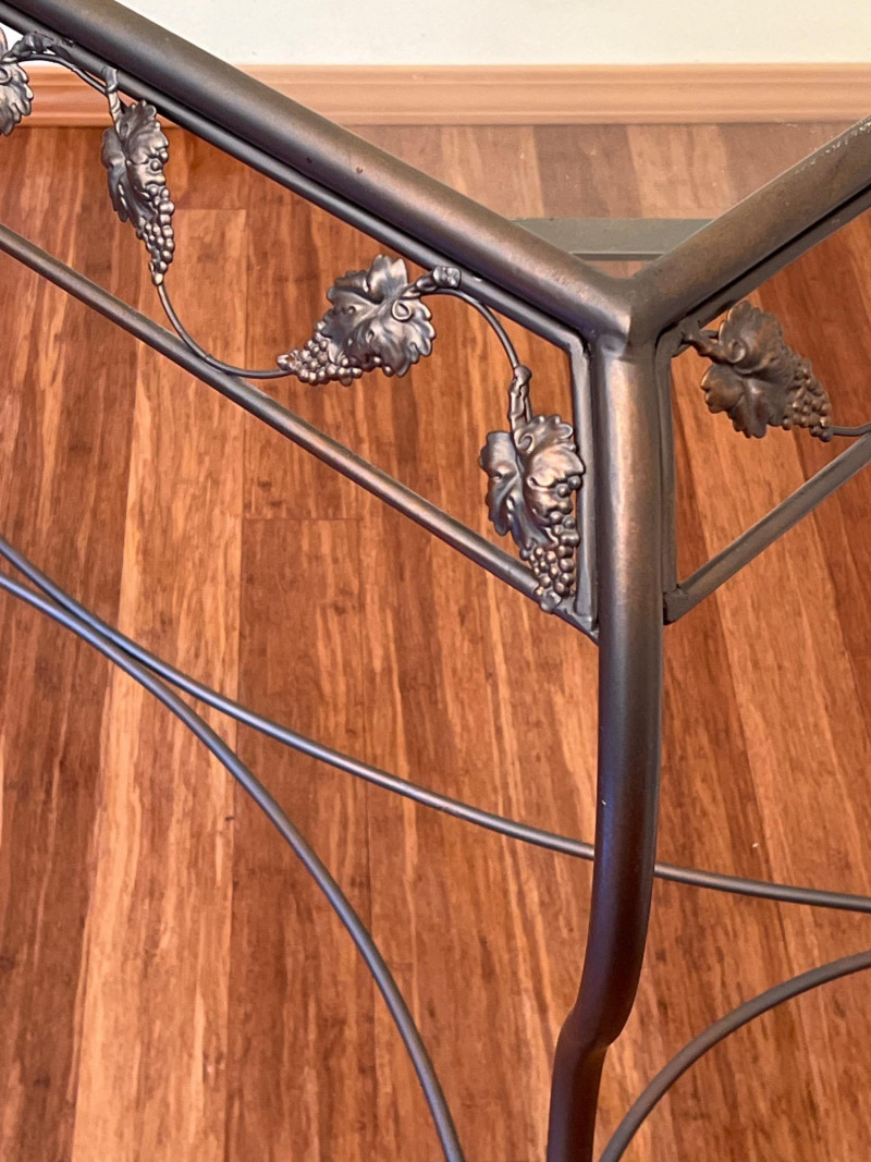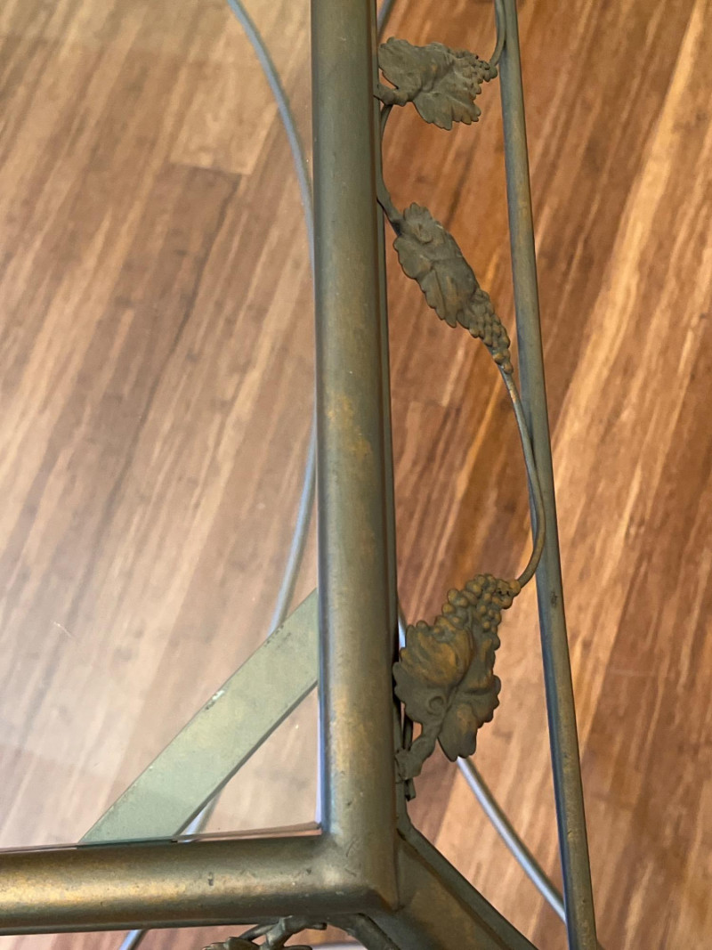 Lot # 75 - Glass Top Side Table – Grape & Leaf Motif Metalwork Base