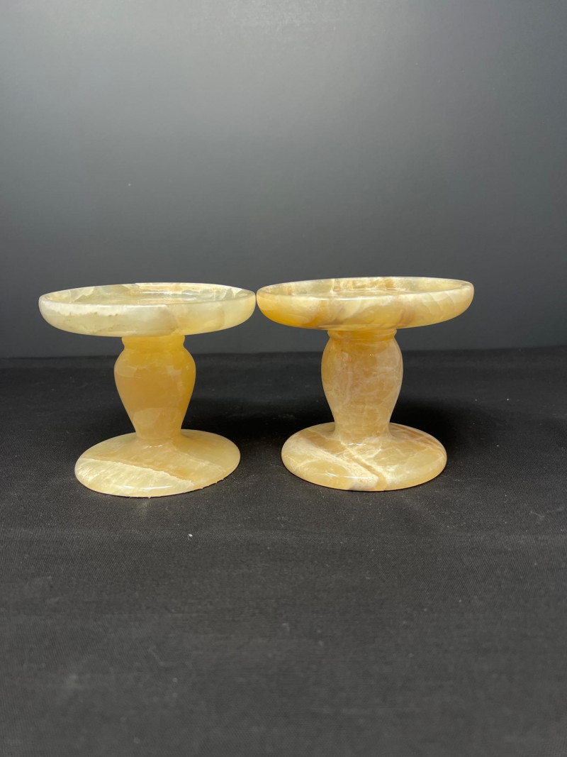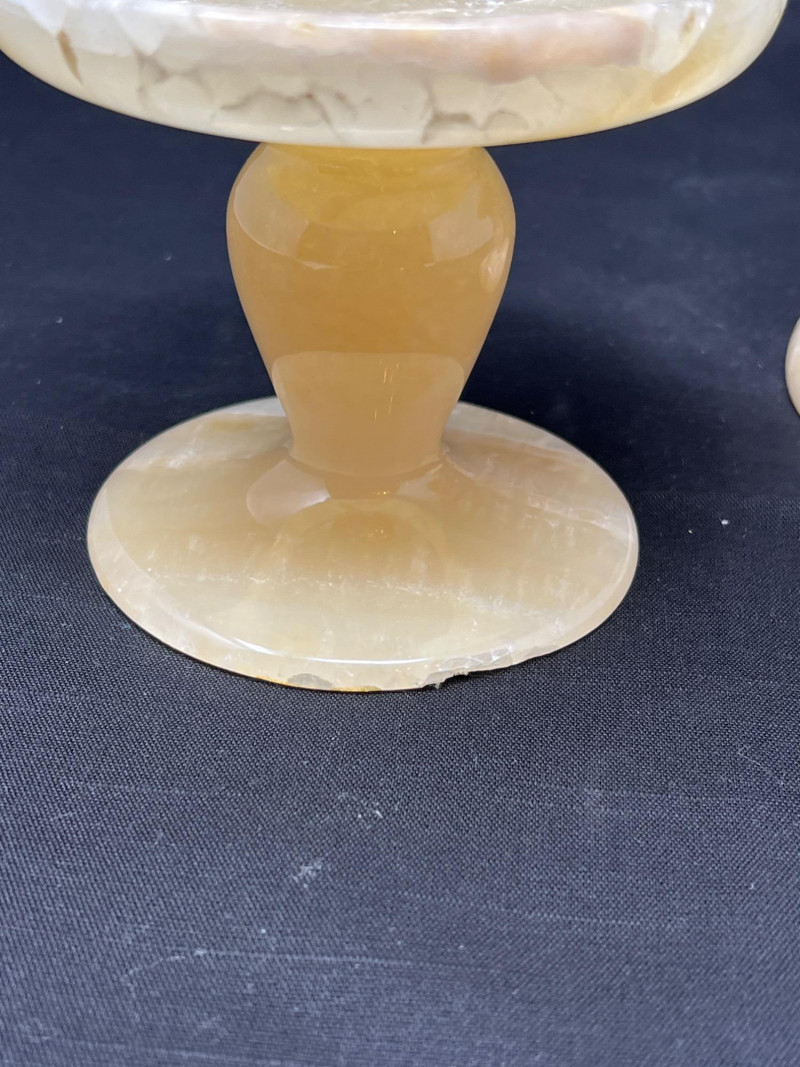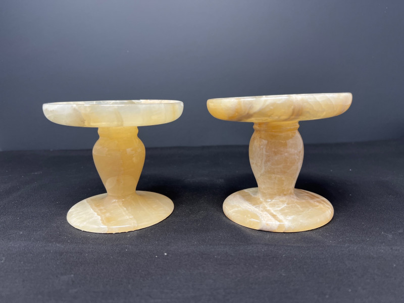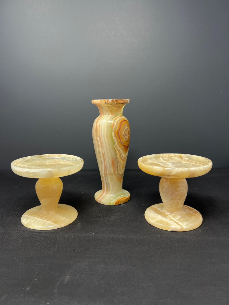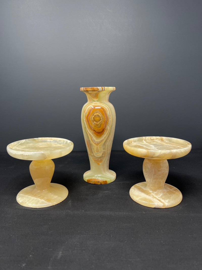 Lot # 79 - Onyx Pillar Candle Holders & Polished Agate Vase – Natural Stone Decor