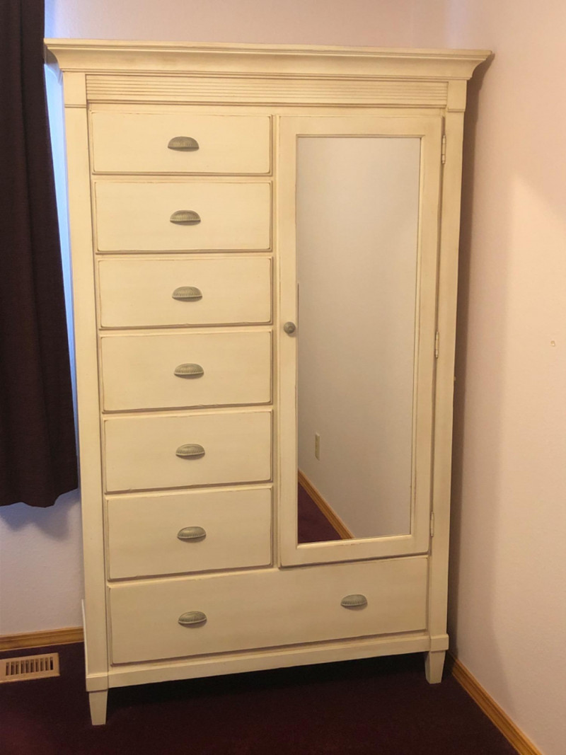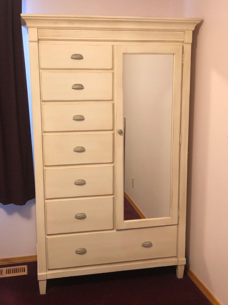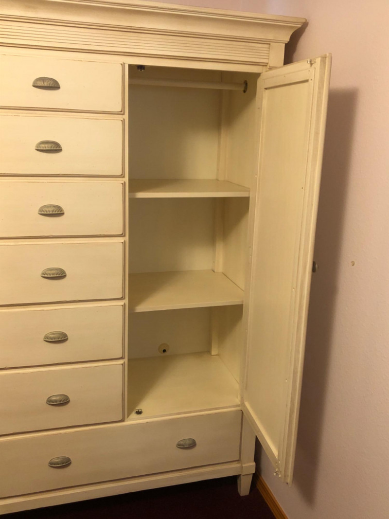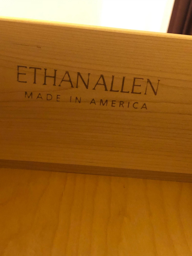 Classic Ethan Allen wardrobe chest offering ample interior storage with finely crafted wood detailing. Timeless design suitable for bedroom organization or entryway statement. Located on second floor with close access to one flight of stairs (12 steps) and immediate access to door to outside. Bidding on this lot is an agreement that: (1.) You will have 2 capable, able-bodied persons to lift and load at a minimum. (2.) You