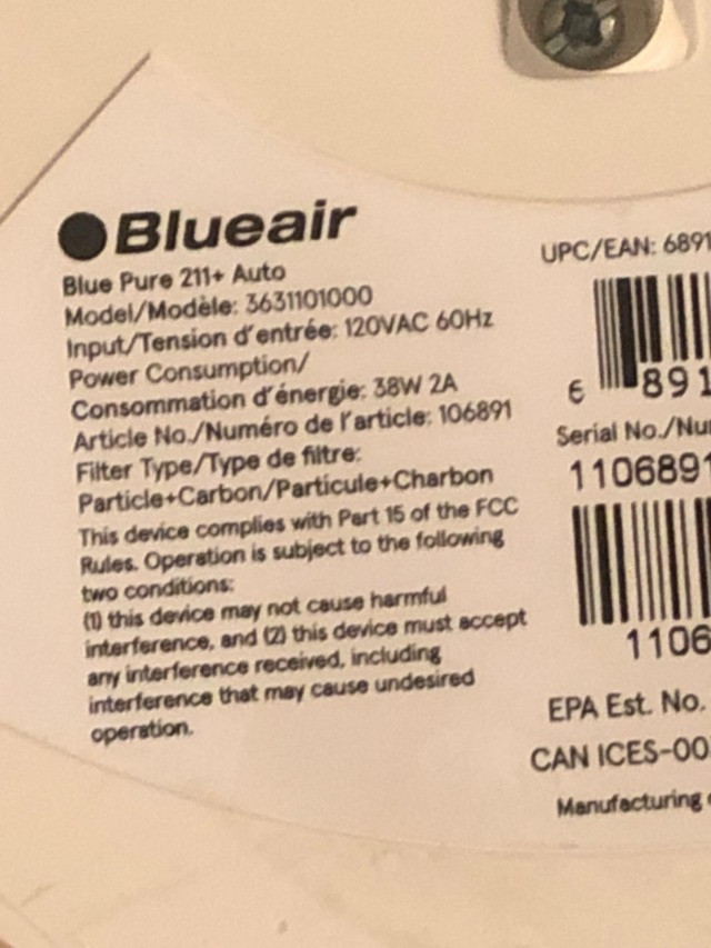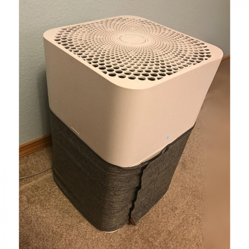 Blueair Blue Pure 211+ Auto air purifier (Model 3631101000) designed for large room environments. Features advanced particle filtration using HEPASilent™ technology, providing quiet yet effective removal of airborne allergens, dust, pet dander, and odors. Compact white enclosure with intuitive interface and auto-adjust settings. (Identical purifier also offered at Lot 35) Working Friendly Reminder: This auction will start closing at 6:30pm on Tuesday, August 12th
