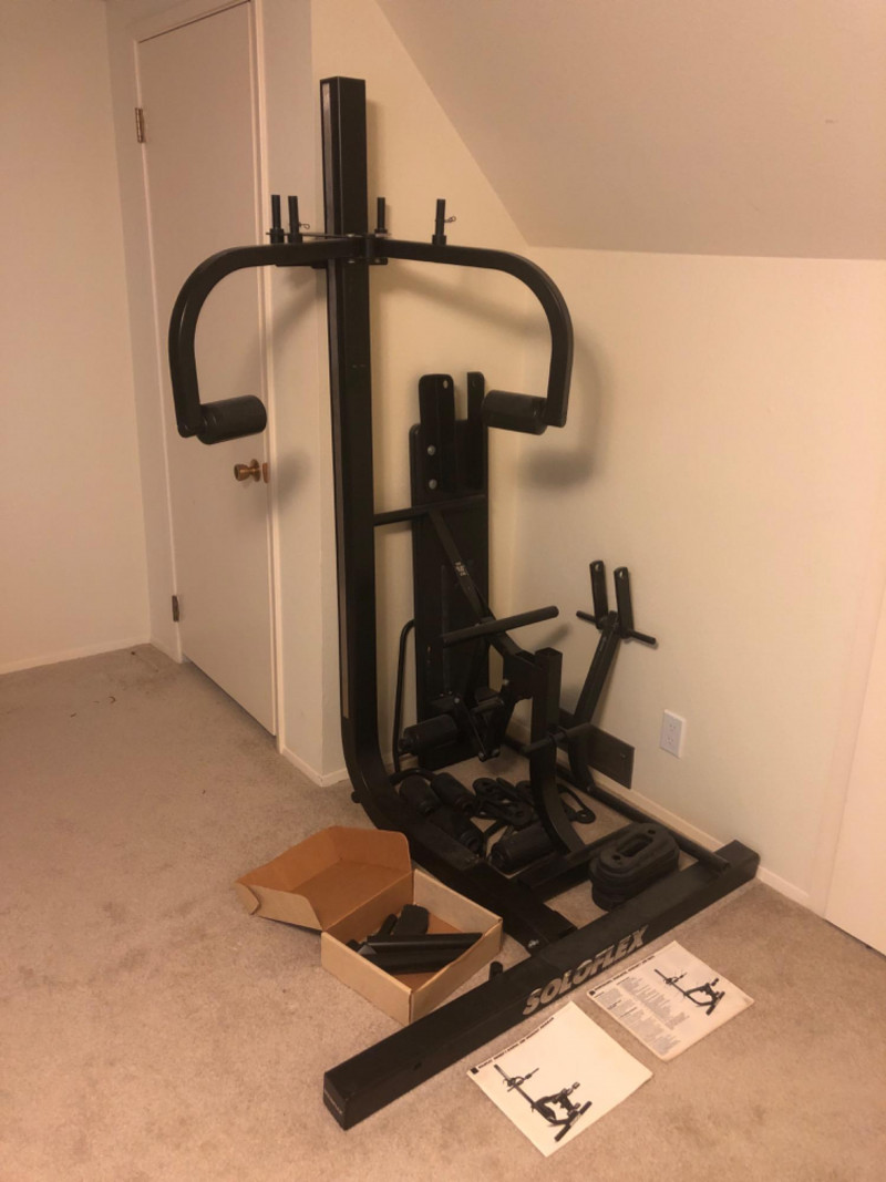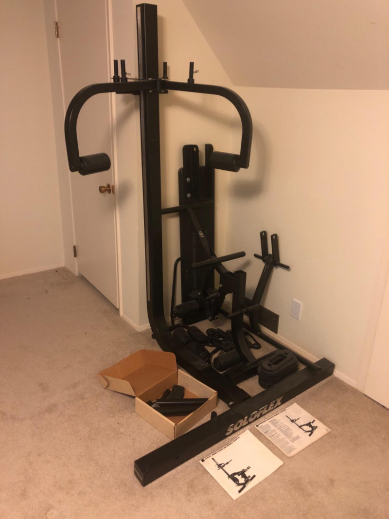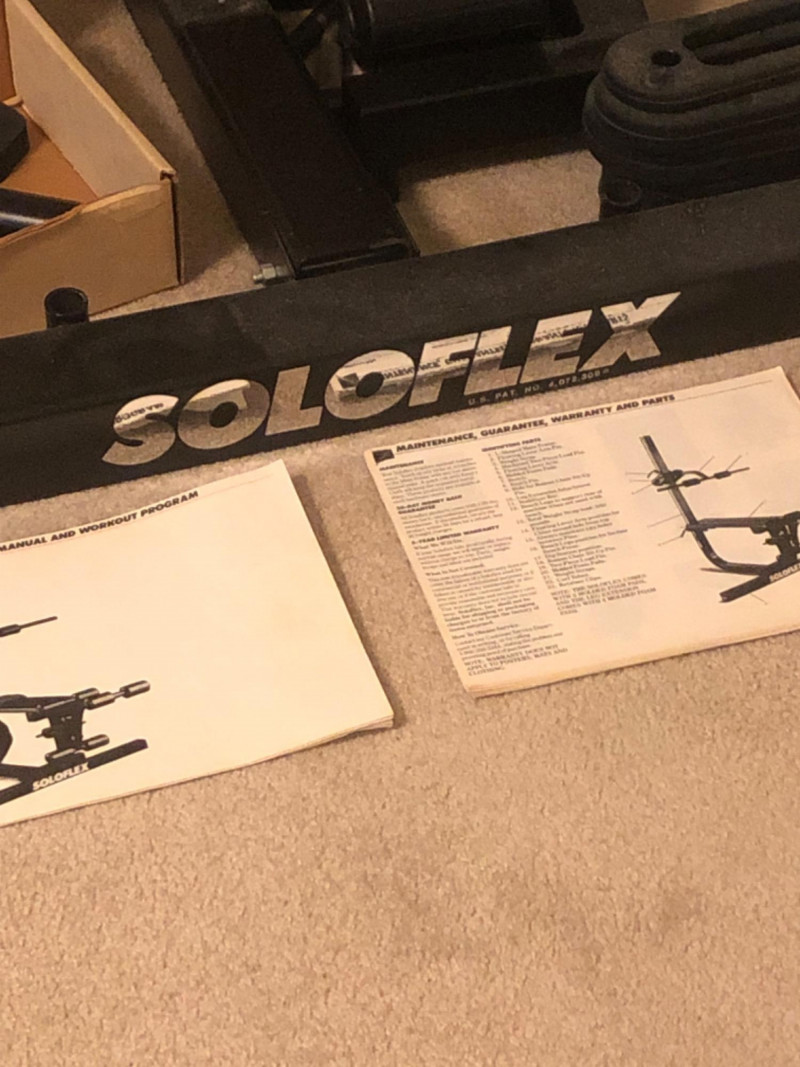Soloflex workout system featuring adjustable resistance bands and steel frame design. Built for full body strength training with modular attachments. Assembly required. Estimated retail value of $1,200. Soloflex Home Gym System designed for full-spectrum strength training. Features adjustable resistance bands, a modular bench setup, and patented weightstrap technology. Supports a wide range of exercises targeting core, upper, and lower body muscle groups. Recognized for its space-saving steel-frame design and durable construction. Brand: Soloflex, Inc., a pioneer in innovative home fitness systems. Friendly Reminder: This auction will start closing at 6:30pm on Tuesday, August 12th