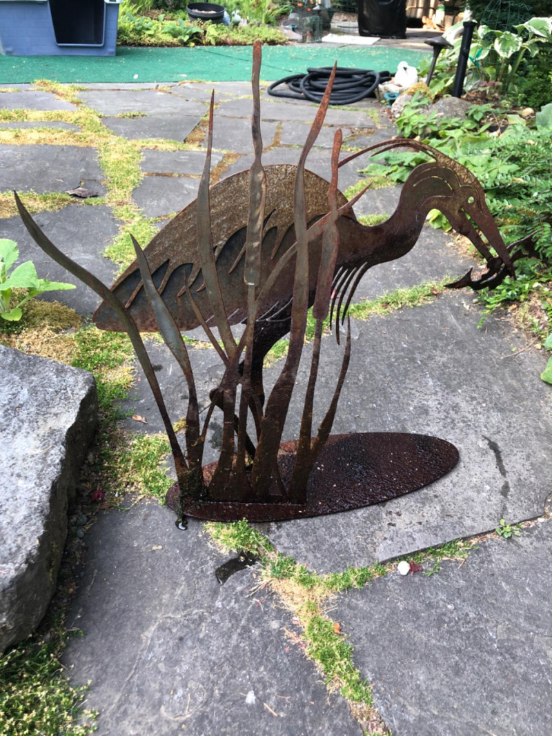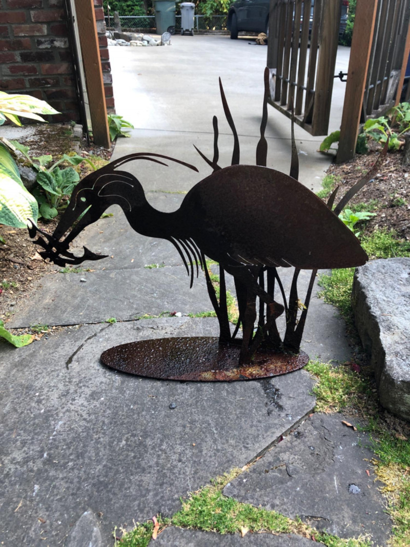 Elevate your outdoor space with this sculptural metal garden art featuring a pelican and blue heron. A vivid expression of coastal wildlife, these handcrafted pieces blend nature-inspired motifs with durable metalwork—perfect for patio display, pondside charm, or landscaping accents. The dual-figure design offers graceful verticality and movement, with dimensions of approximately 22" high × 10" wide and 24" high × 23" wide. Rich in detail and silhouette, it’s an eye-catching addition for garden enthusiasts and collectors of avian-themed decor. Friendly Reminder: This auction will start closing at 6:30pm on Tuesday, August 12th