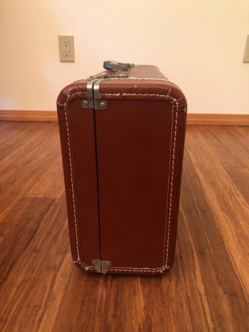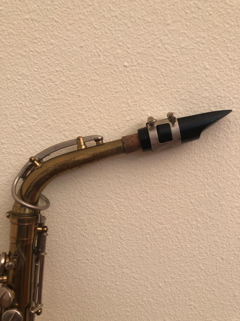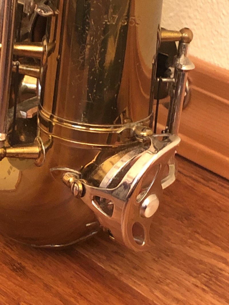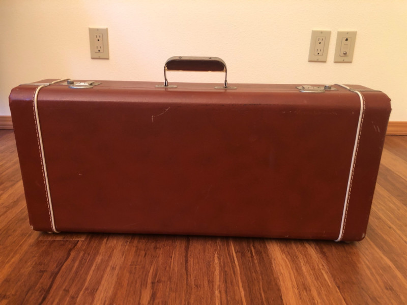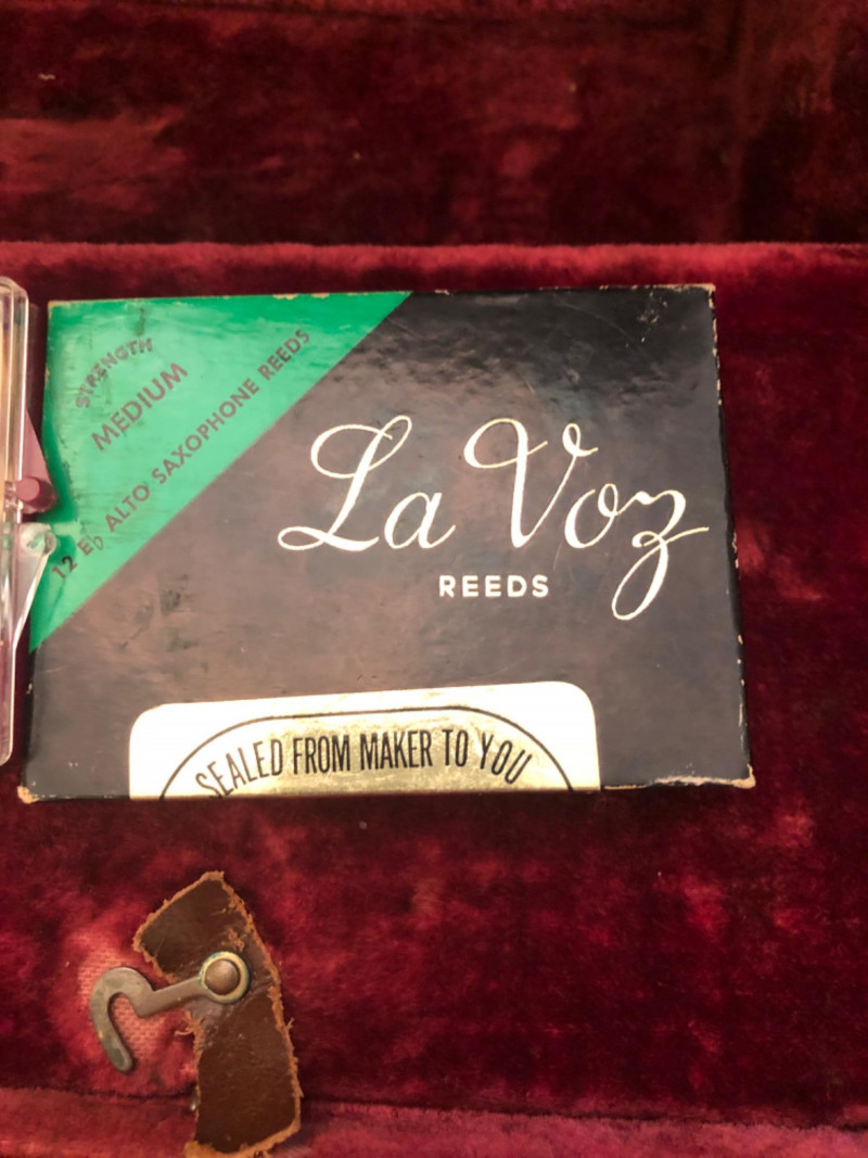 A golden-hued saxophone ready for its encore—displayable or playable, this brass wind instrument offers timeless curves, musical character, and retro charm. Numbered A7653. Old Kraftsman saxophones appear to be a United States issue of this instrument from Malerne of France between 1950s-70s. Friendly Reminder: This auction will start closing at 6:30pm on Tuesday, August 12th