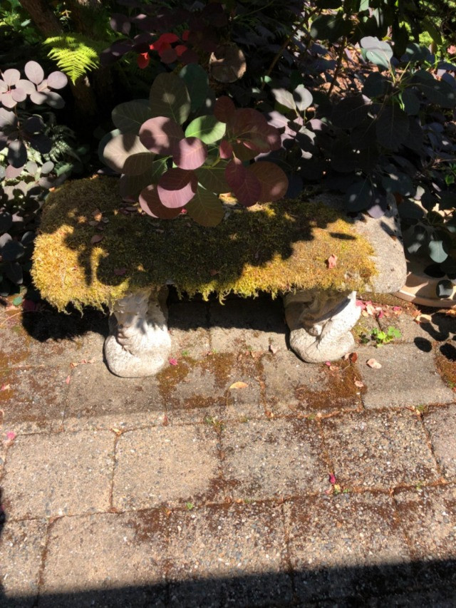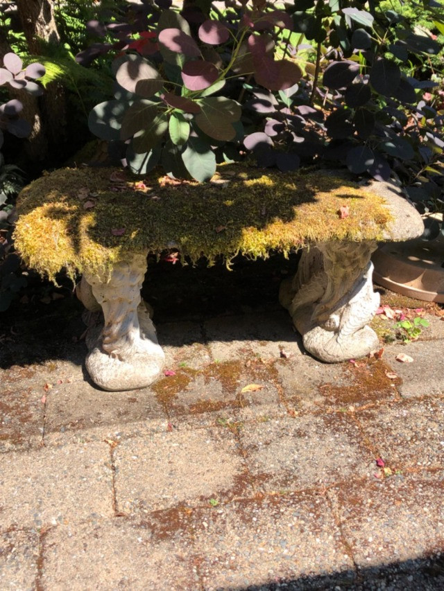 Lot # 124 - Garden Bench with Bird Relief – Organic Moss-Touched Stone Accent