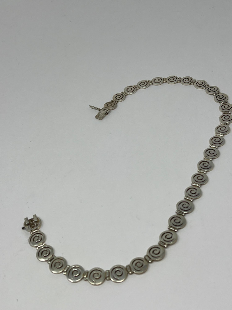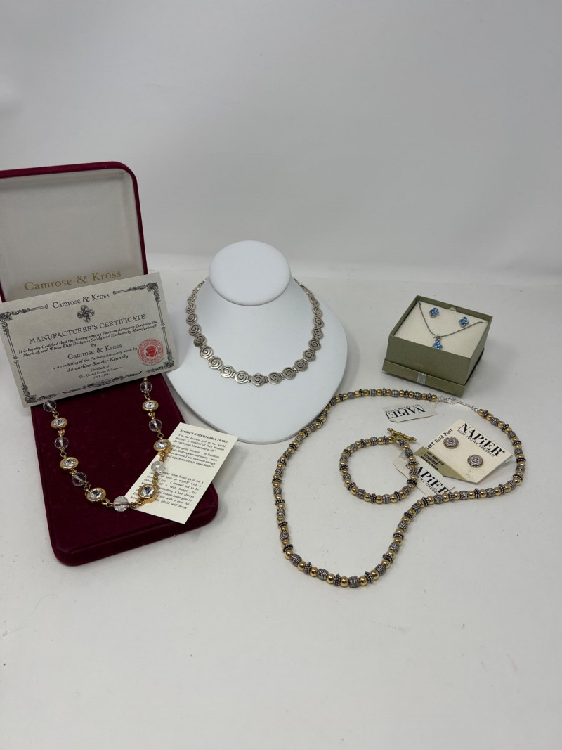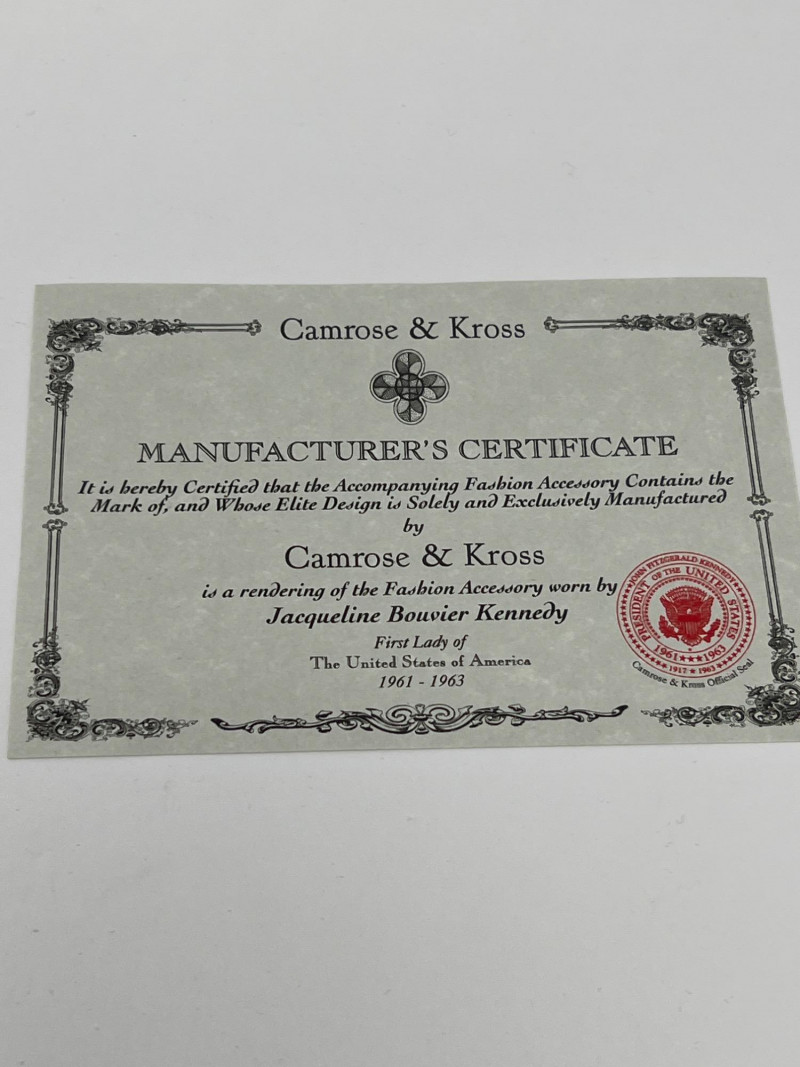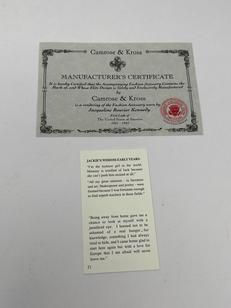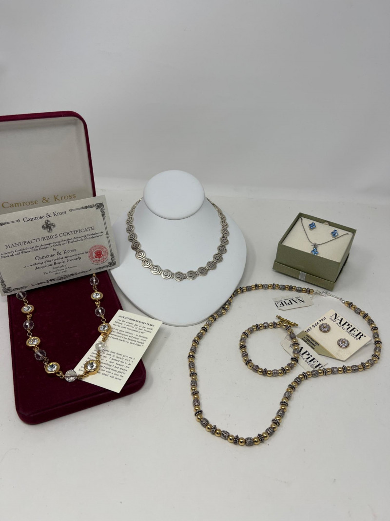 Celebrate timeless elegance with this stylish pairing of vintage-inspired fashion and classic silver craftsmanship. The Camrose & Kross necklace is a certified replica of a beloved design worn by Jacqueline Kennedy—24" in length, it exudes dignified glamour reminiscent of America’s former First Lady. Paired with a 16" sterling silver (.925) necklace featuring clean circular links, this lot offers both sophistication and versatility. Whether you’re drawn to historic fashion tributes or sleek geometric accessories, this duo bridges past and present with enduring grace. Friendly Reminder: This auction will start closing at 6:30pm on Tuesday, August 12th