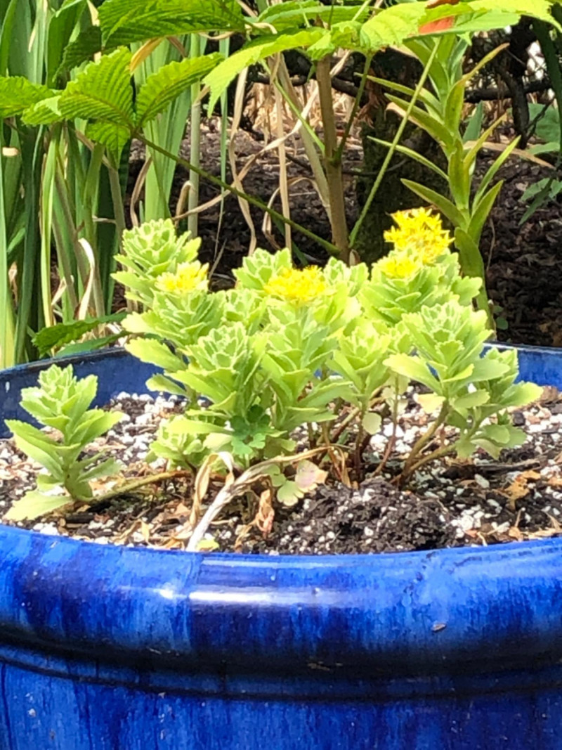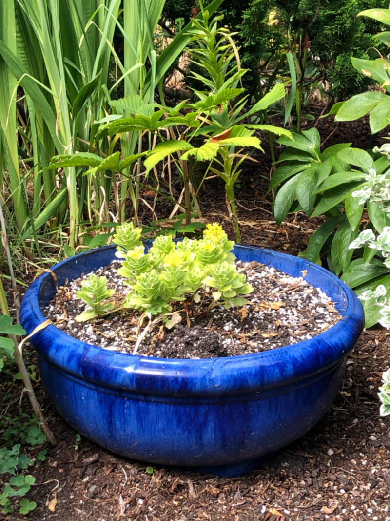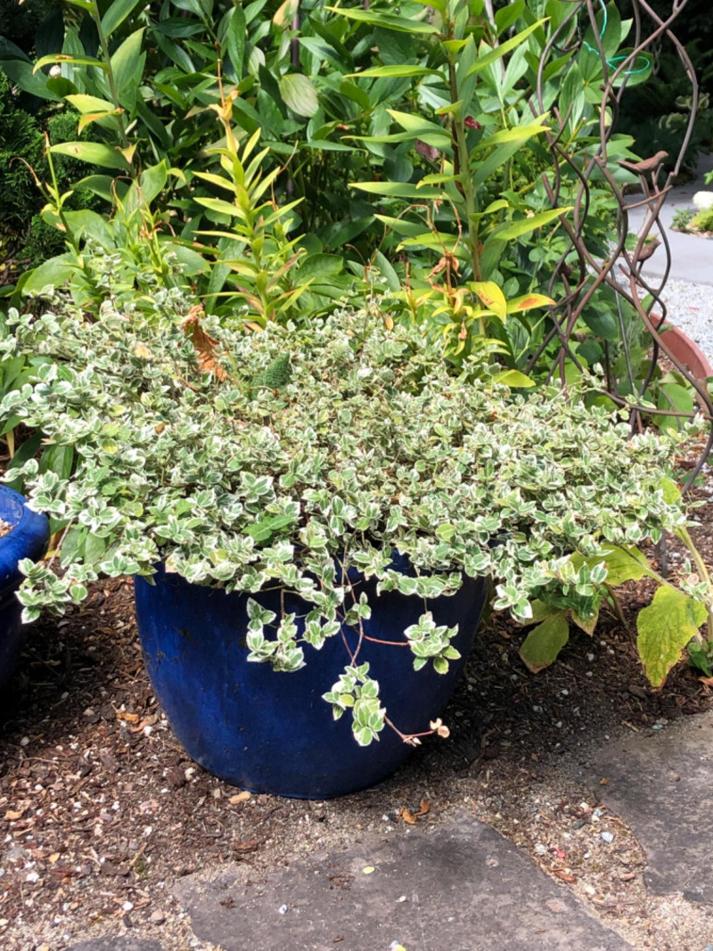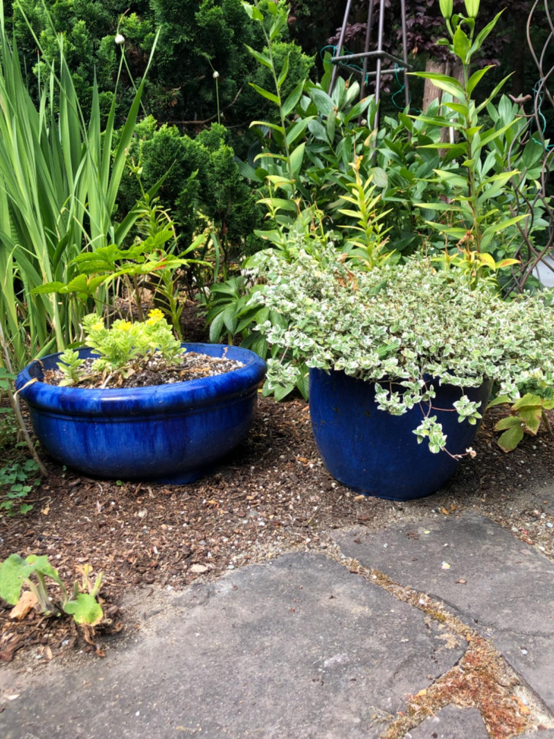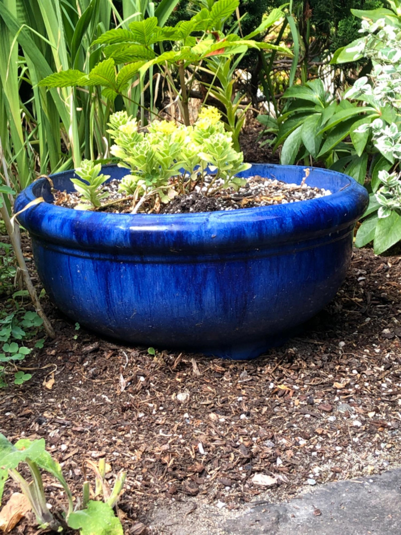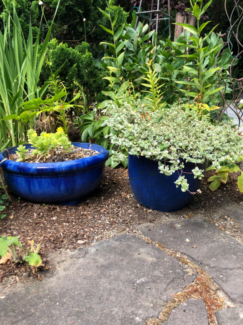 Lot # 132 - Set of Blue Ceramic Planters with Plants –Petunia and Coleus Group