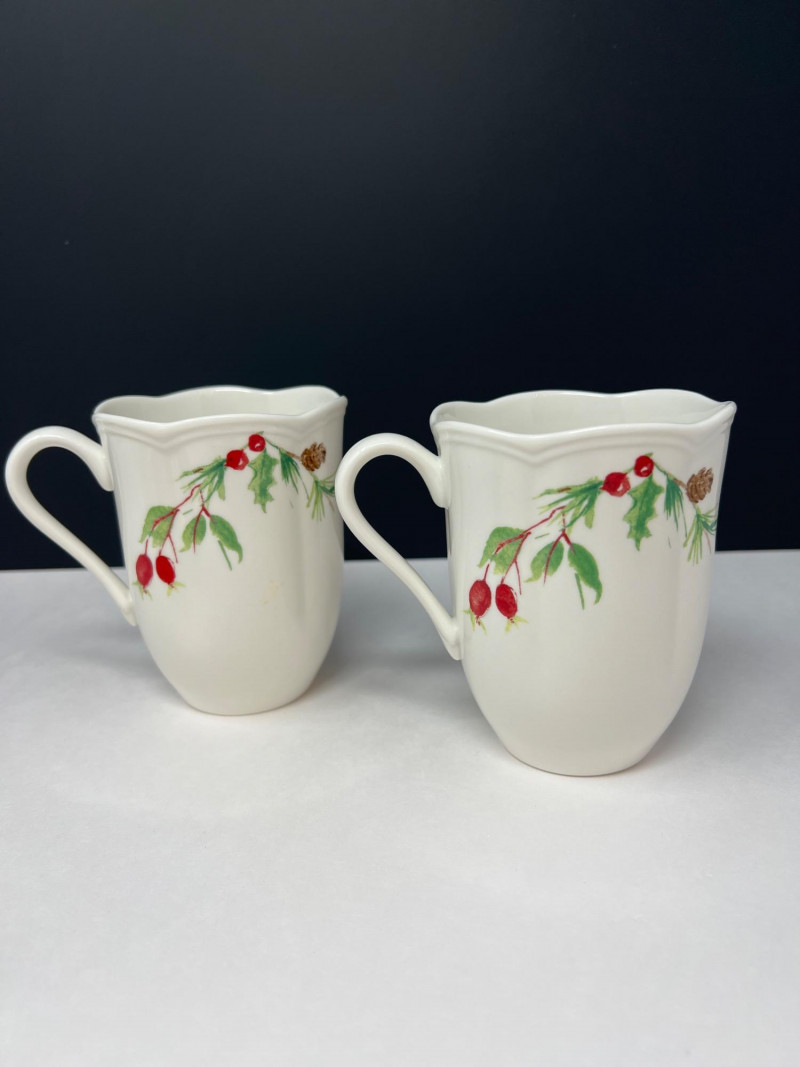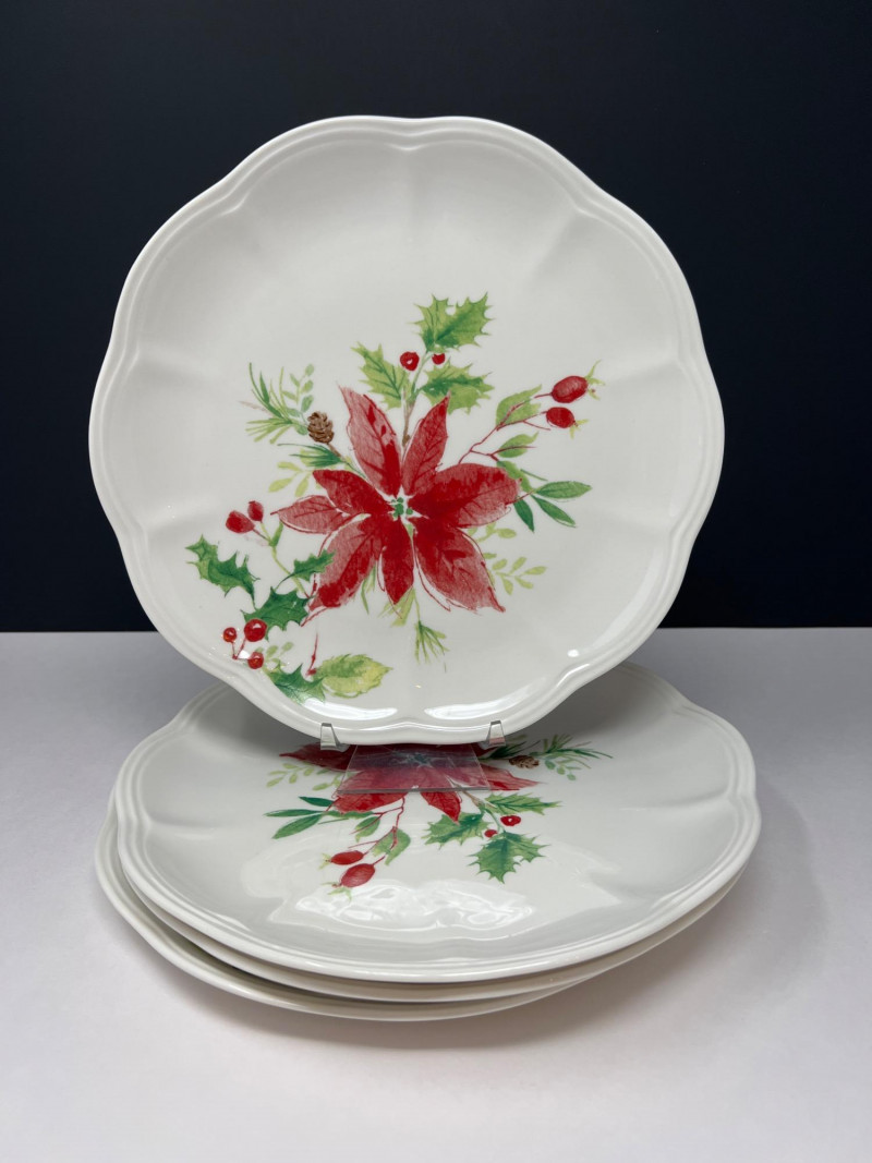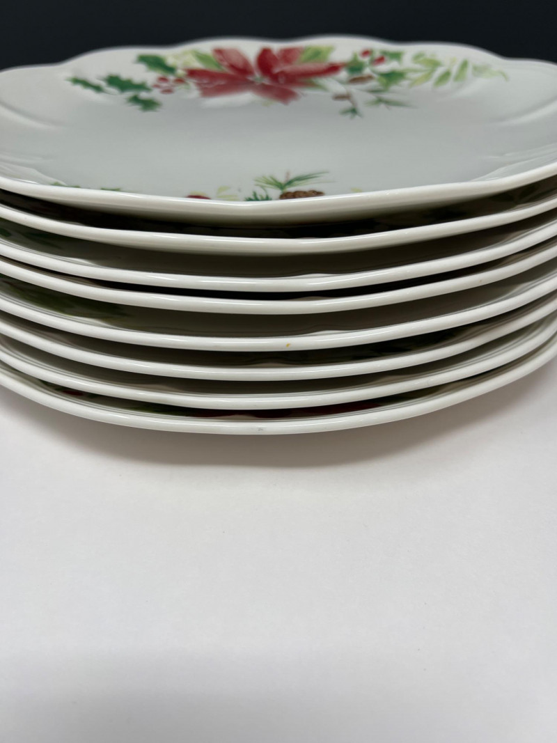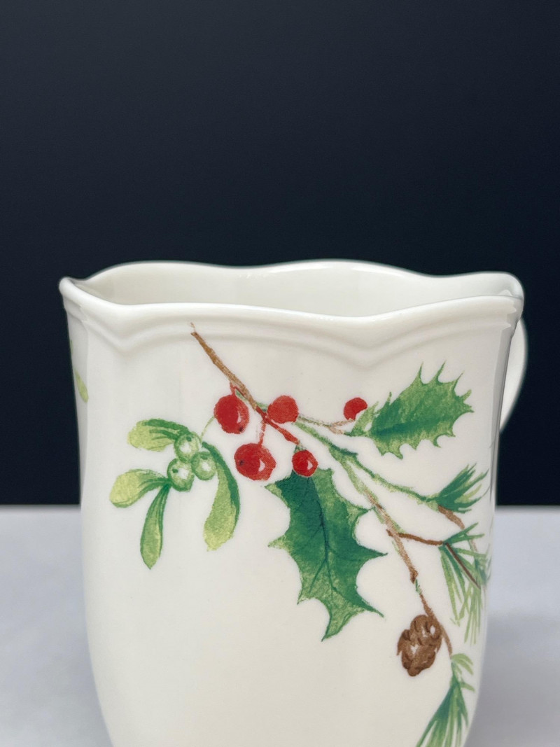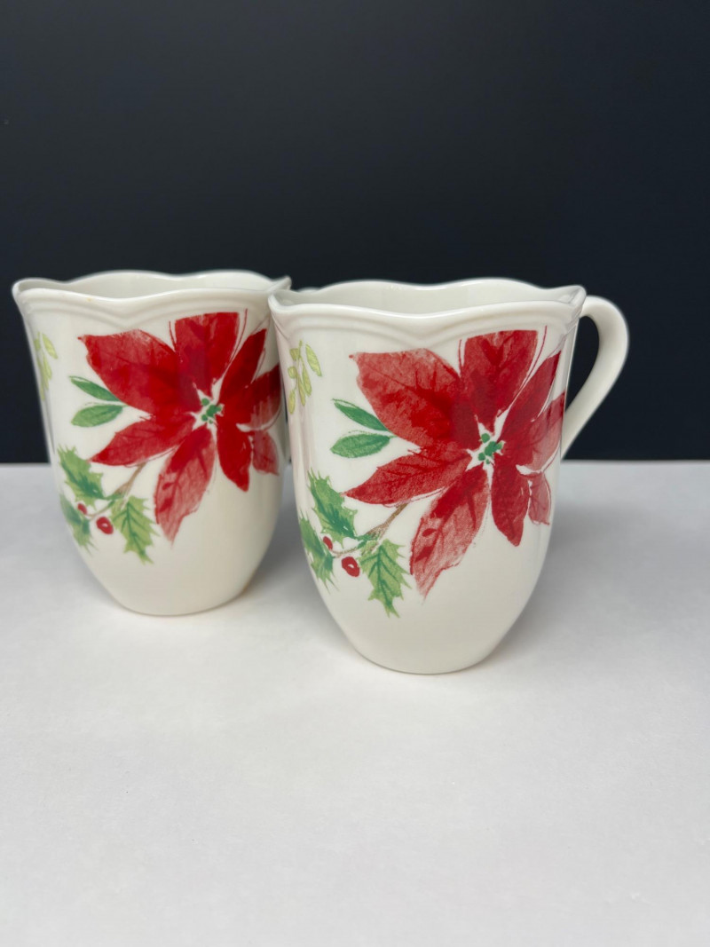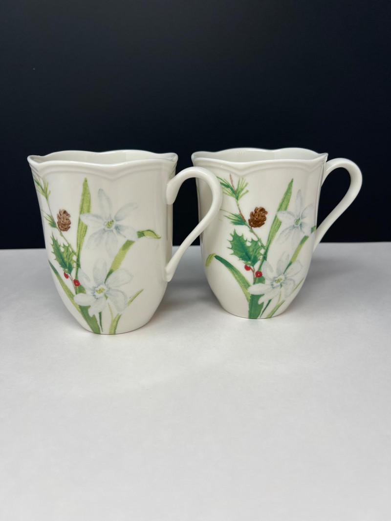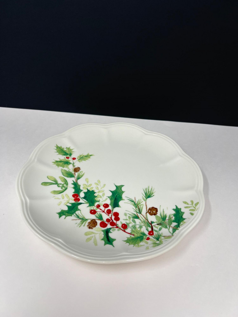 Graceful porcelain dishware set from Lenox’s Winter Meadow collection featuring leaf and floral motifs across plates, bowls, and serveware. Elegant cream base with pastel accents—perfect for seasonal gatherings. Contents: 4 dinner plates – poinsettia pattern (11" diameter) 2 dinner plates – white winter floral (11" diameter) 2 dinner plates – red amaryllis (11" diameter) 4 salad plates – mixed designs (9.25" diameter) 7 handled mugs – coordinated holiday motifs (4.5" tall) Features: Porcelain construction Holiday patterns include poinsettia, holly, berries, and winter florals Coordinated pieces suitable for seasonal use or display Dishwasher safe Friendly Reminder: This auction will start closing at 6:30pm on Tuesday, August 12th