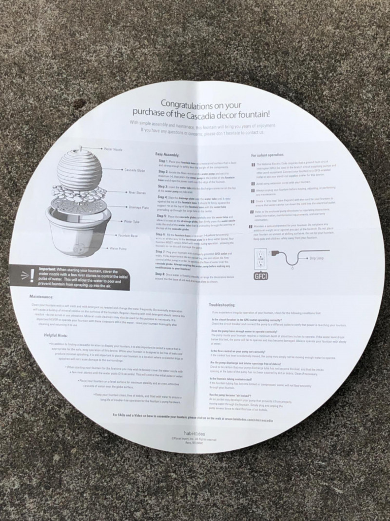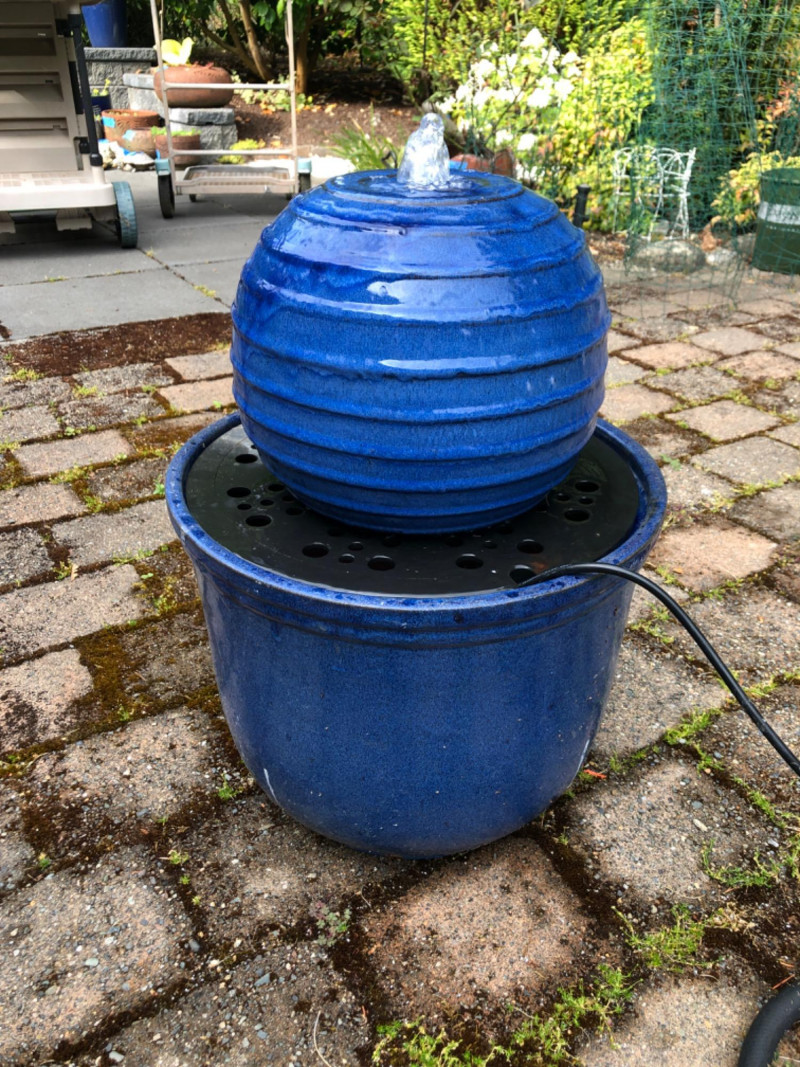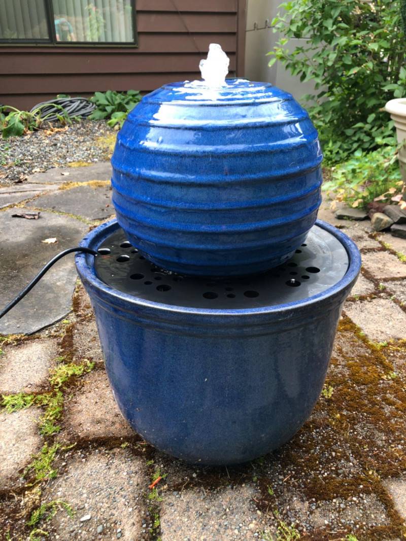 Multi-tiered ceramic fountain with flowing water design and glossy glaze finish. Ideal for patio tranquility or indoor zen corners. Plug-in design with gentle water sound and visual movement. Working Friendly Reminder: This auction will start closing at 6:30pm on Tuesday, August 12th