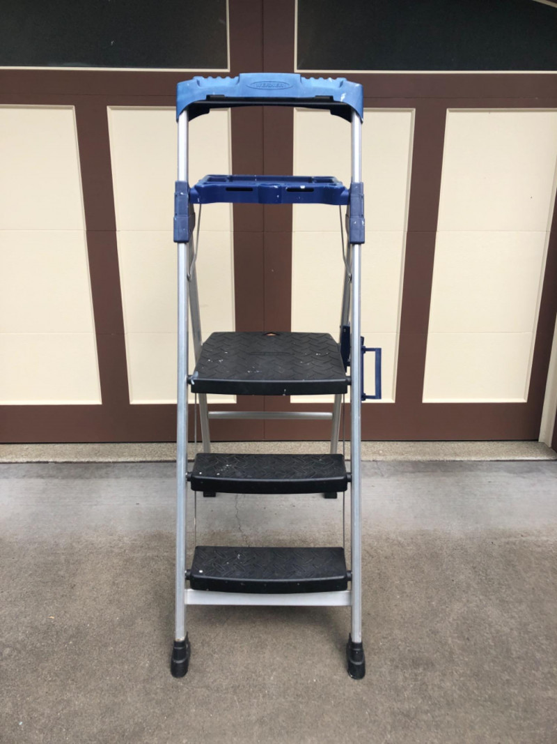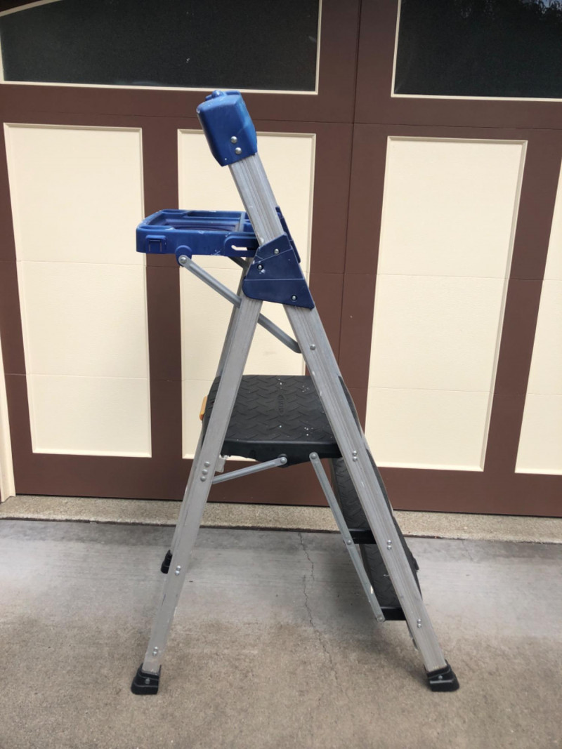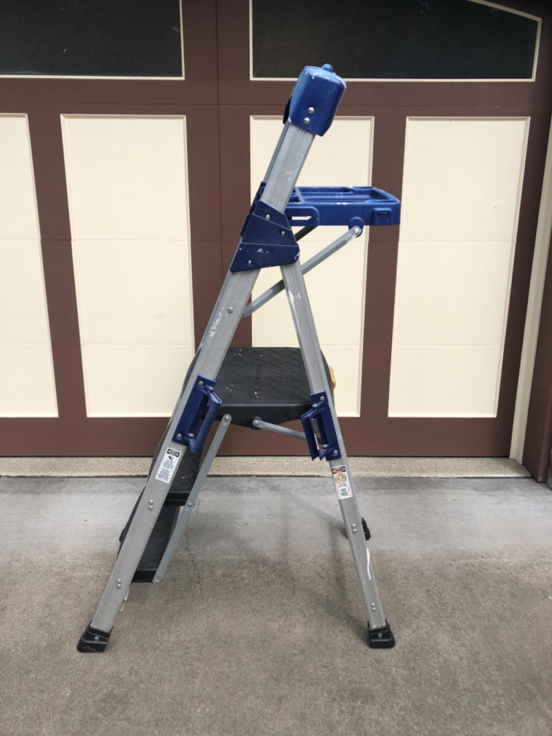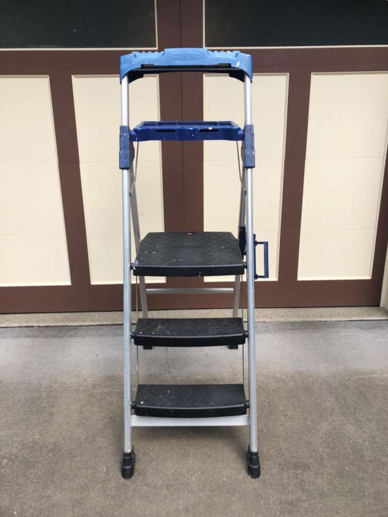Werner folding step ladder with a 3-foot height and wide-top step, suitable for indoor projects, painting, or shelf access. Lightweight aluminum frame and anti-slip feet for stability. Friendly Reminder: This auction will start closing at 6:30pm on Tuesday, August 12th