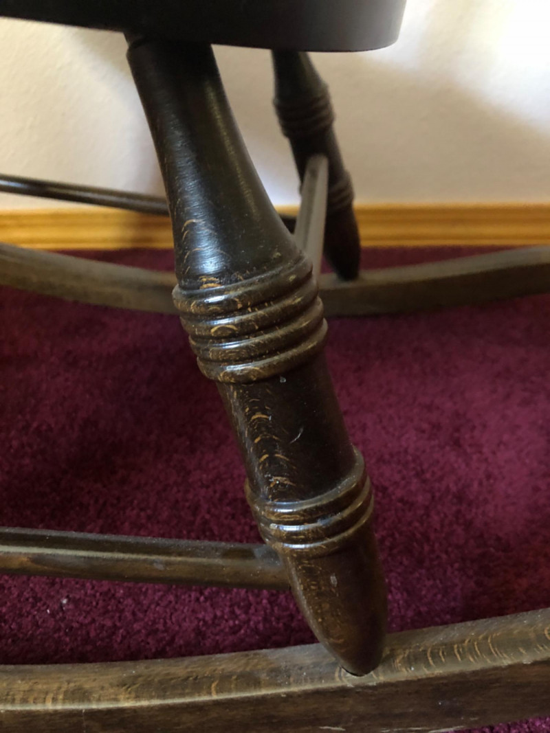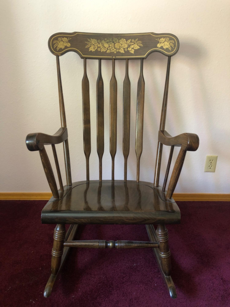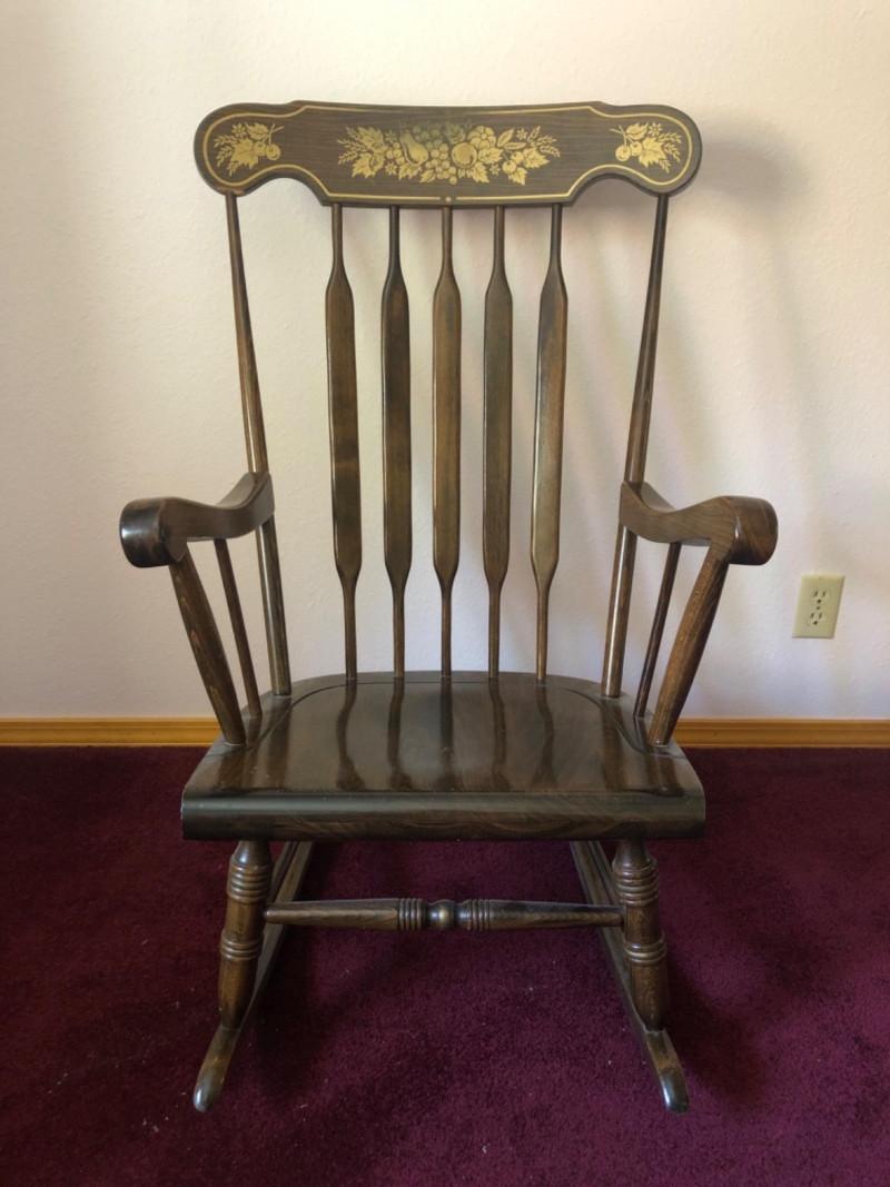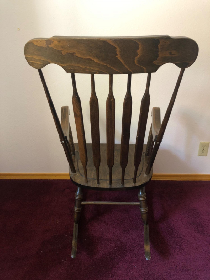 Classic wood rocking chair crafted by Novoles-Straza of Yugoslavia. Features simple contours and warm wood tones—designed with traditional European craftsmanship. Located on second floor, staircase nearby (15 steps) to ground level exit. Friendly Reminder: This auction will start closing at 6:30pm on Tuesday, August 12th