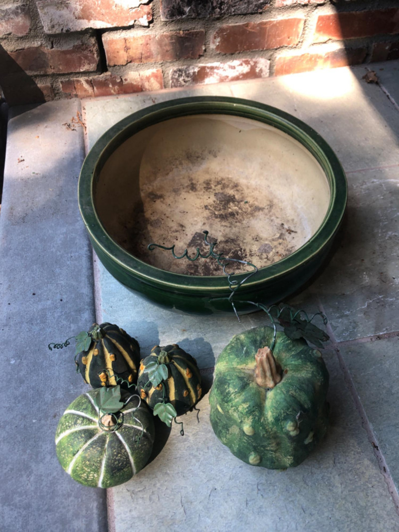 Lot # 162 - Green Ceramic Planter & Decorative Gourds – Autumnal Garden Styling