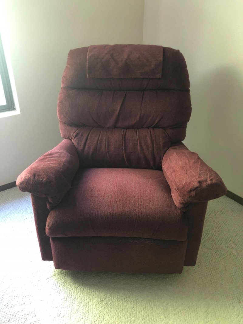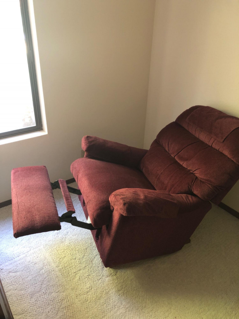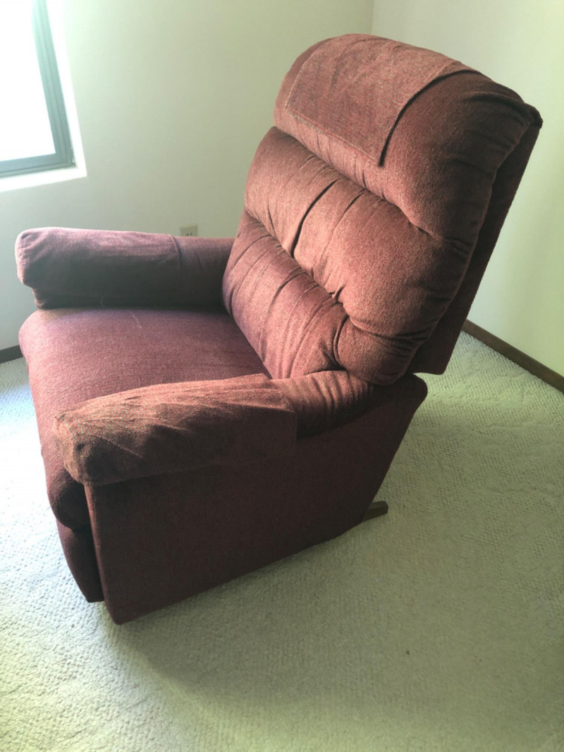 Relax into comfort with a classic La-Z-Boy rocker recliner upholstered in soft neutral fabric. Featuring padded arms, tufted back, and easy recline mechanism for everyday lounging. Dimensions: 41" Ground to Top Of Back 15" Ground to Top Of Seat 34" Width 36" Depth Bidding on this lot is an agreement that: (1.) You will have 2 capable, able-bodied persons to lift and load at a minimum. (2.) You