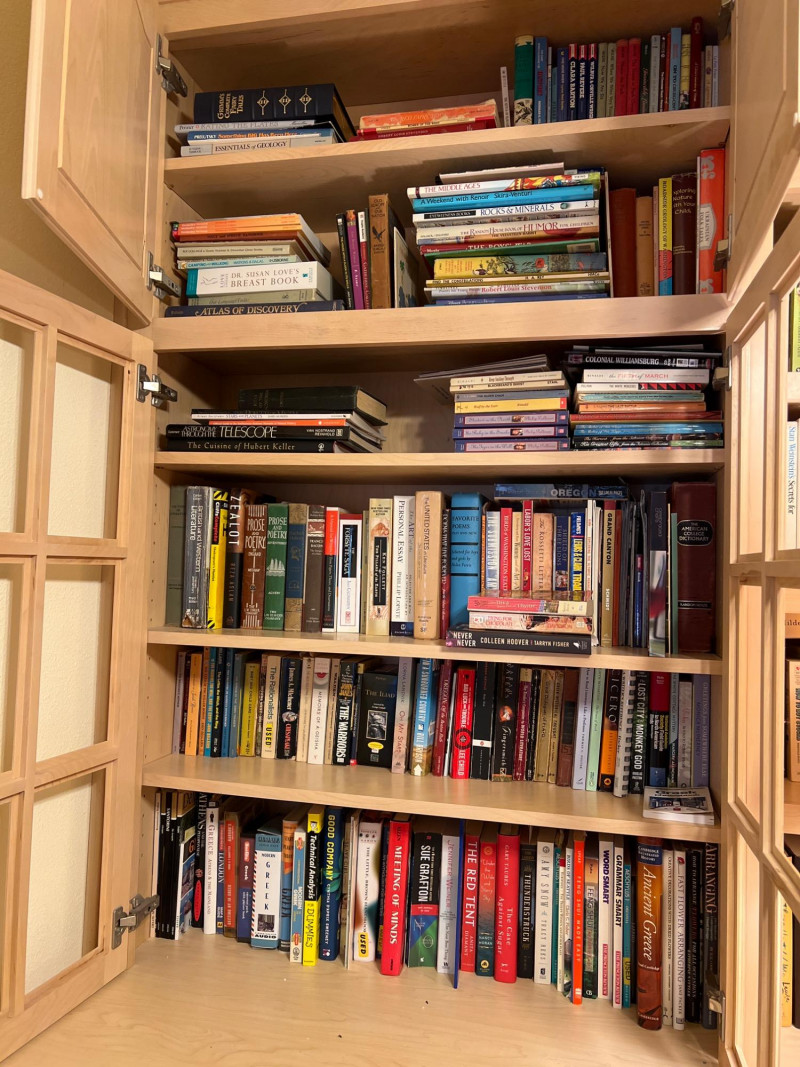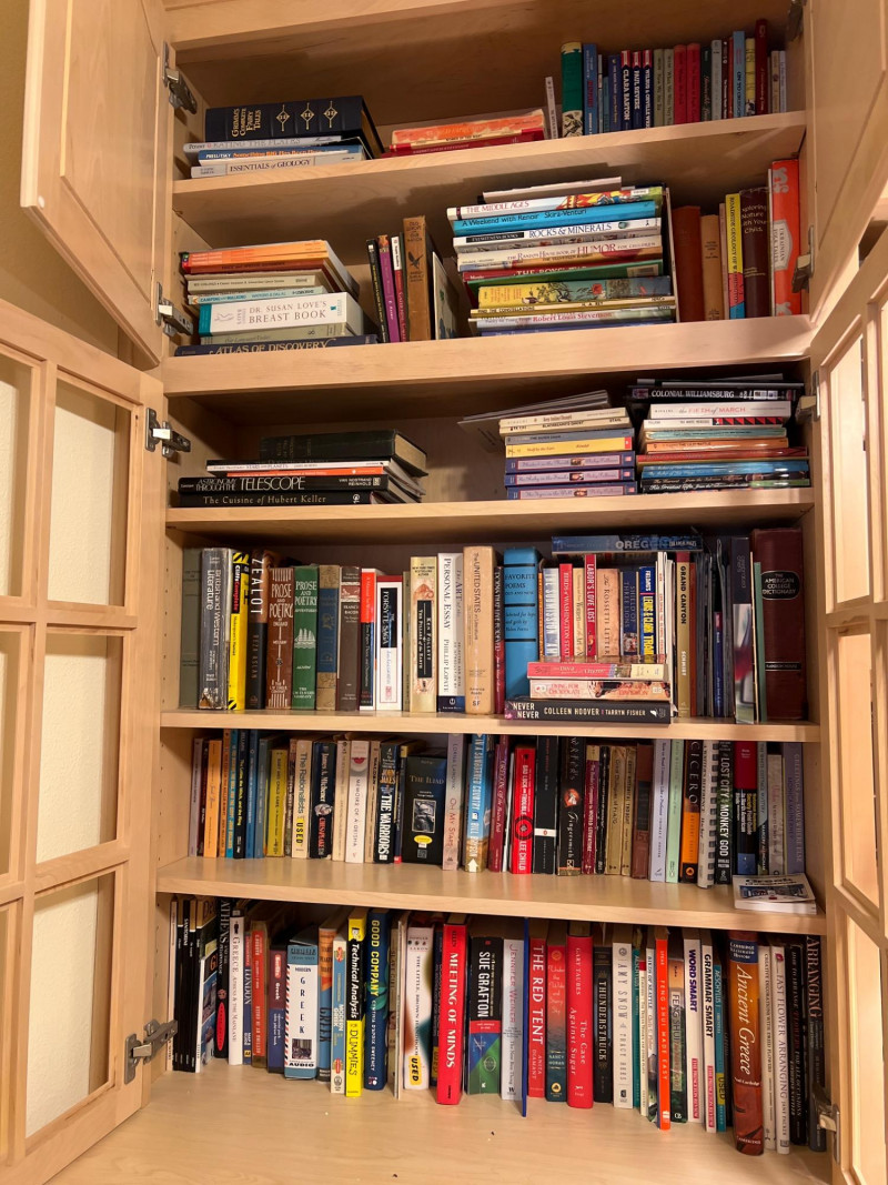 Broad selection of hardcover and paperback books across six shelves. Topics range from American history and fiction to gardening, travel, and practical guides. Ideal for home library expansion or estate literary curation. Friendly Reminder: This auction will start closing at 6:30pm on Tuesday, August 12th