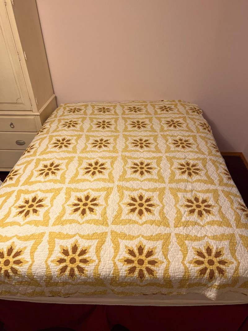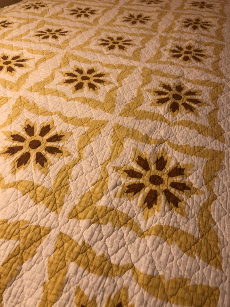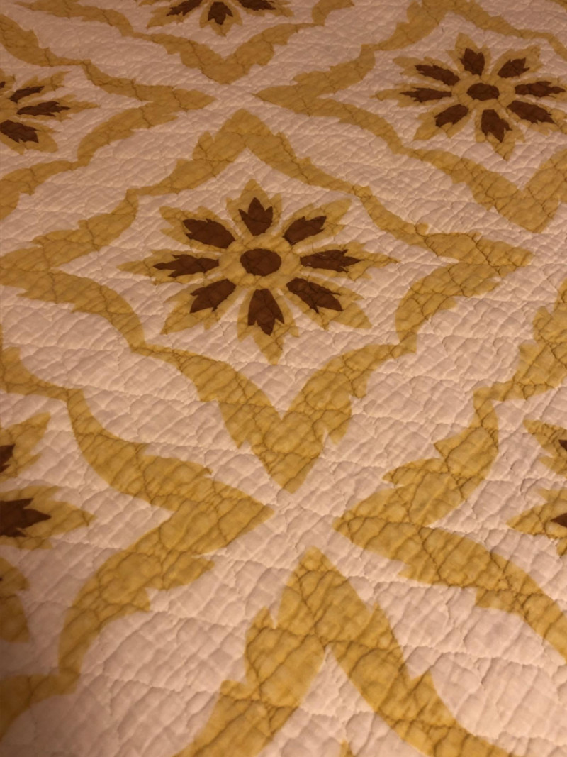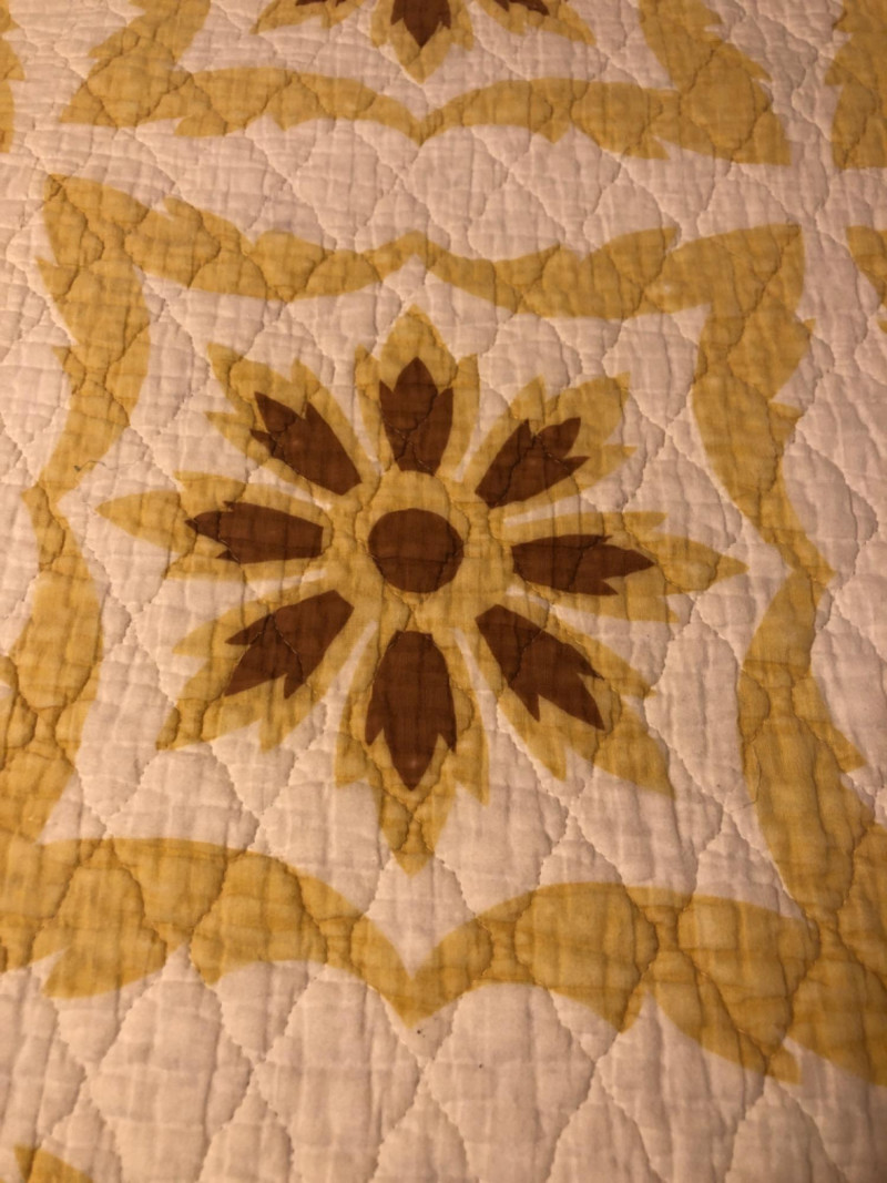Lot # 202 - Antique Old Kentucky Quilt – Handcrafted Neutral Sunburst/Floral