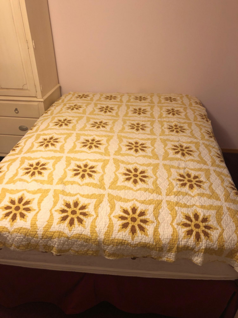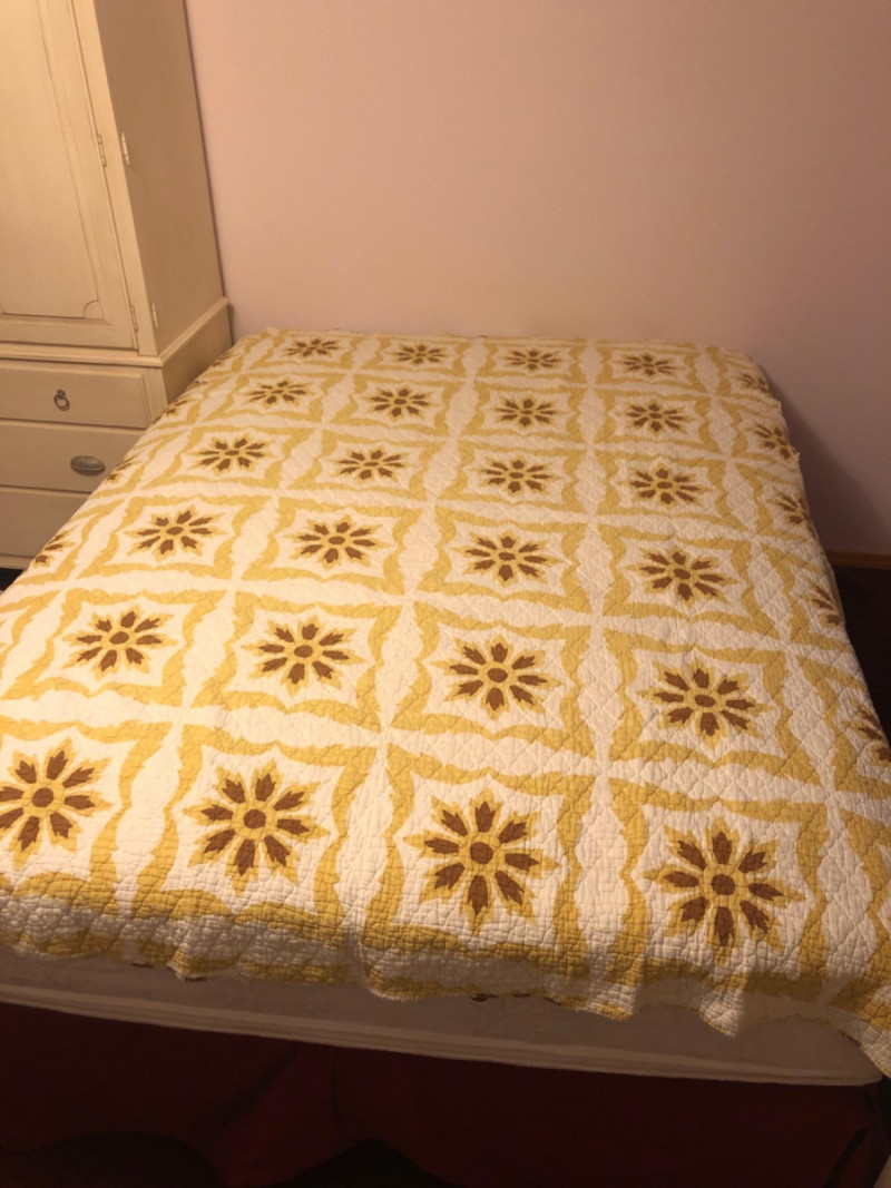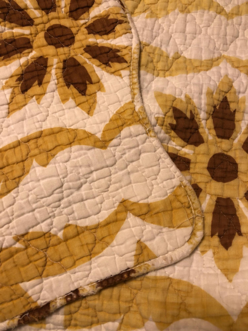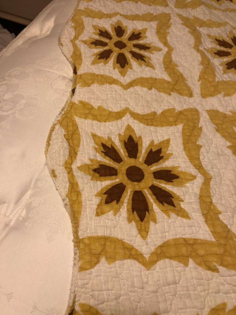 Lot # 202 - Antique Old Kentucky Quilt – Handcrafted Neutral Sunburst/Floral