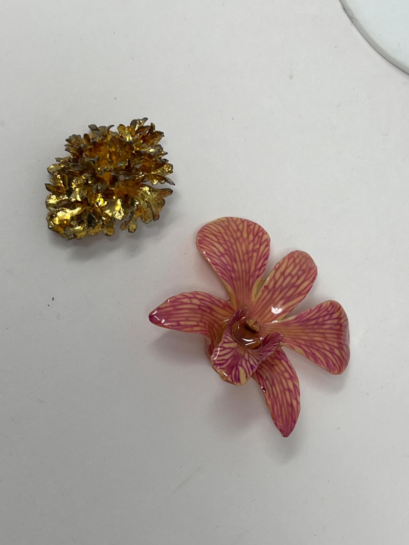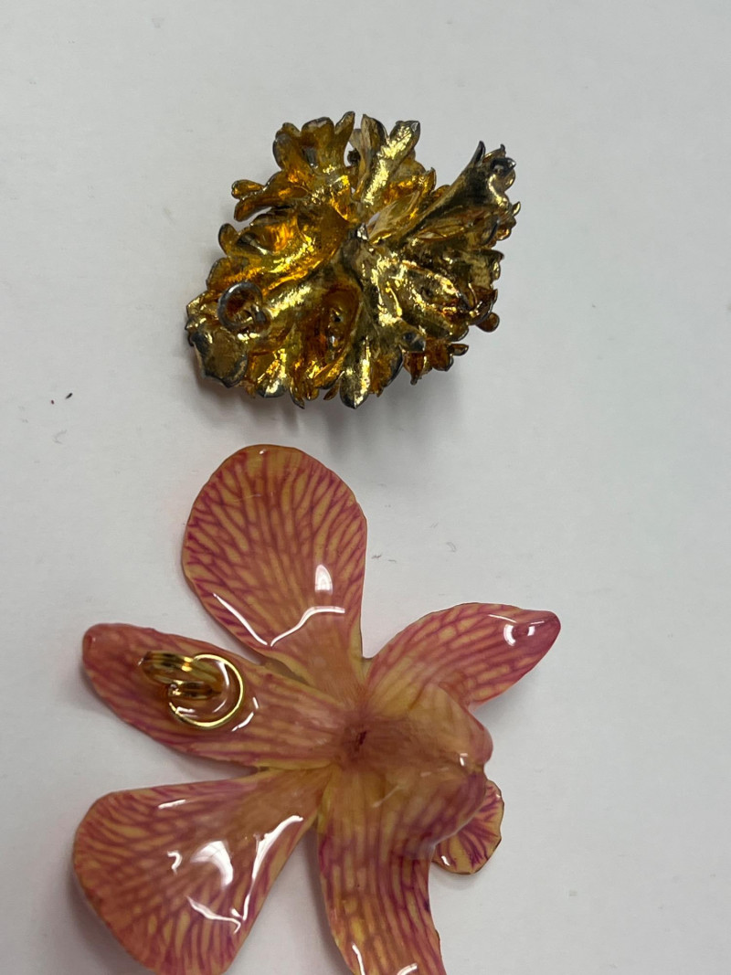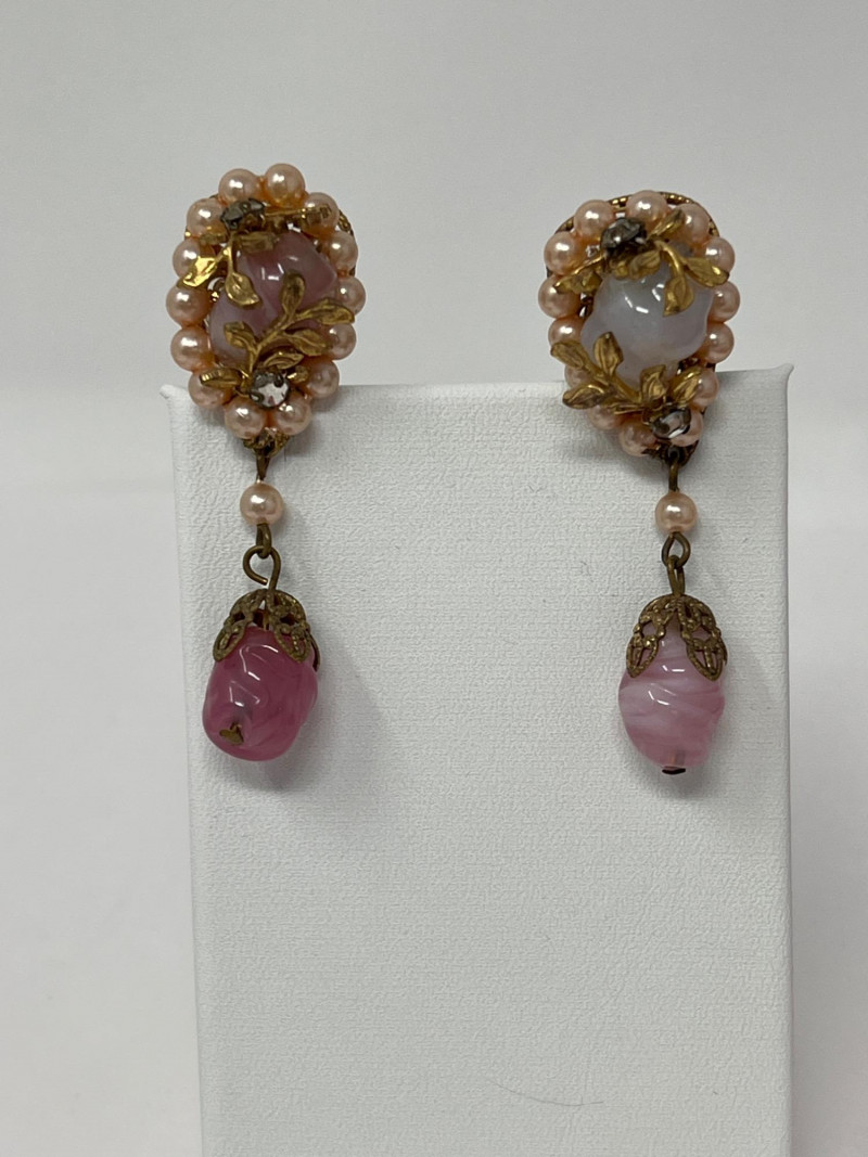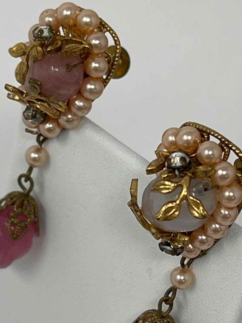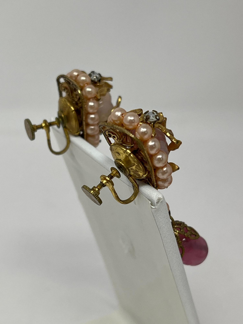 A curated selection of vintage fashion jewelry pieces showcasing varied materials, styles, and colors. Includes classic costume necklaces, earrings, brooches, and barrettes. Pieces may feature glass beads, enamel work, faux pearls, gold- and silver-tone finishes, and mid-century styling. Ideal for collectors, stylists, or crafters looking to repurpose with character.Each item displays signs of age and wear consistent with vintage fashion accessories. Some items included: Agate and crystalline scarf ring, abalone scarf ring, Jerry Berry pendant clock (needs new battery), colorful peacock multi-colored stone pin, unique antique screwback earrings and more. Friendly Reminder: This auction will start closing at 6:30pm on Tuesday, August 12th