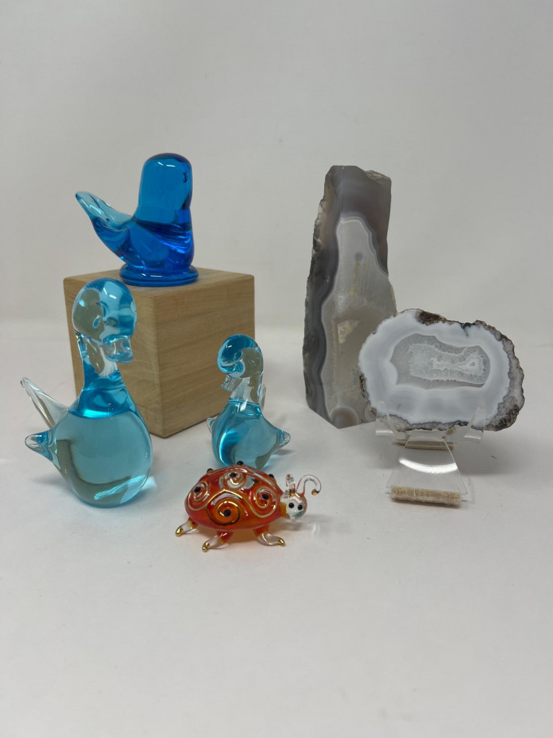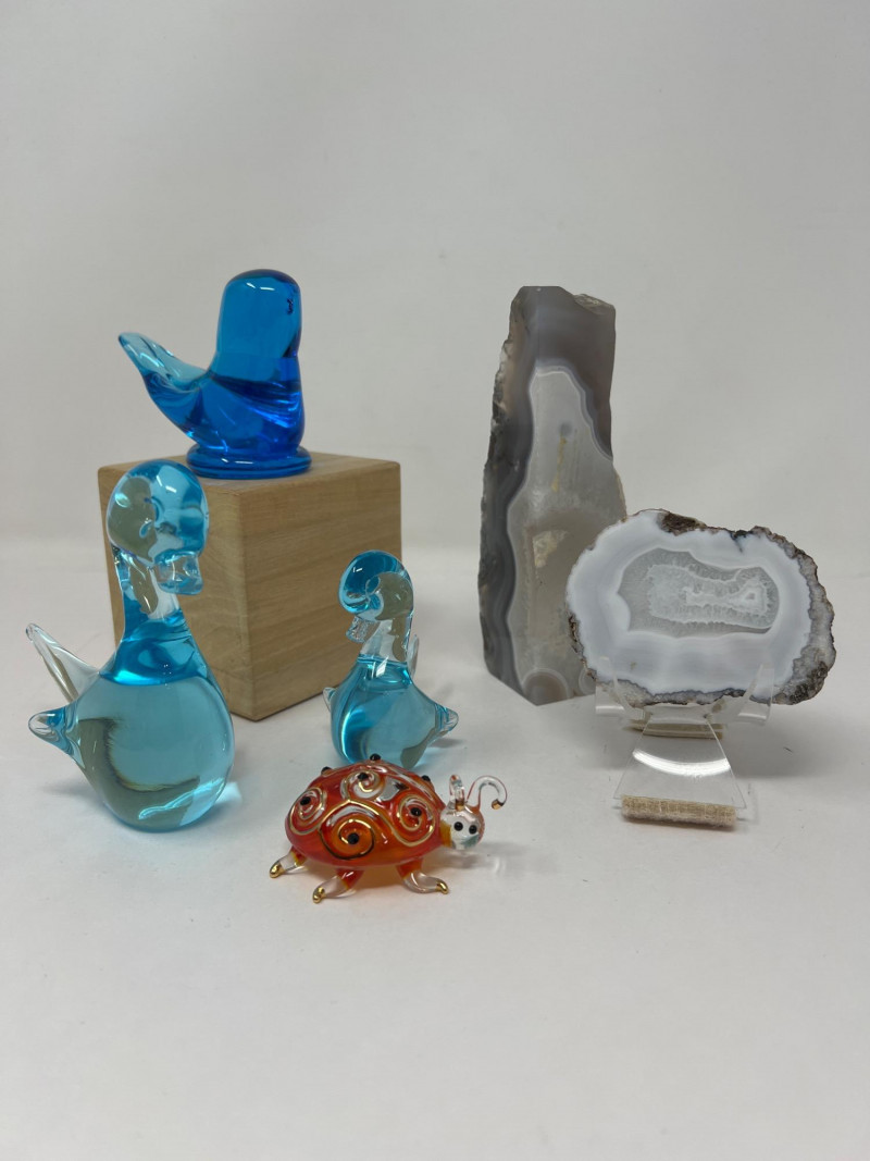 Lot # 235 - Nature’s Muse: Handblown Glass Birds & Organic Agate Stones