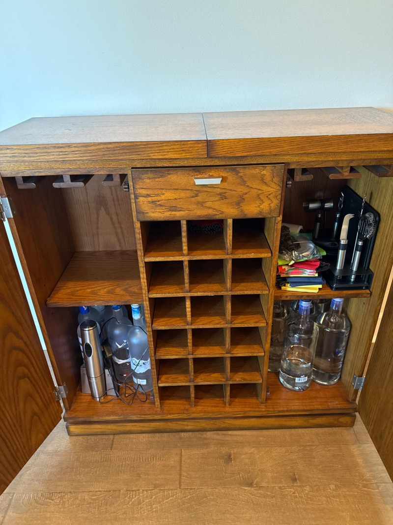 Lot # 48 - Expandable Wood Wine Bar Cabinet with Storage