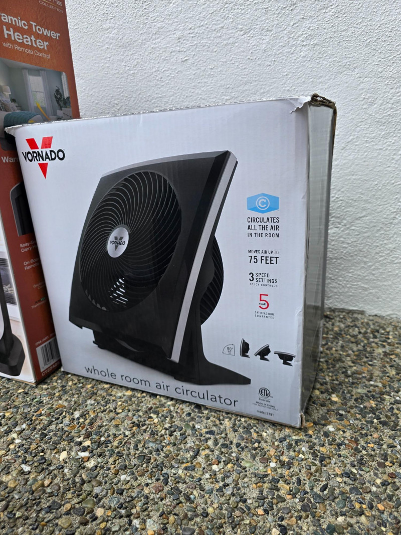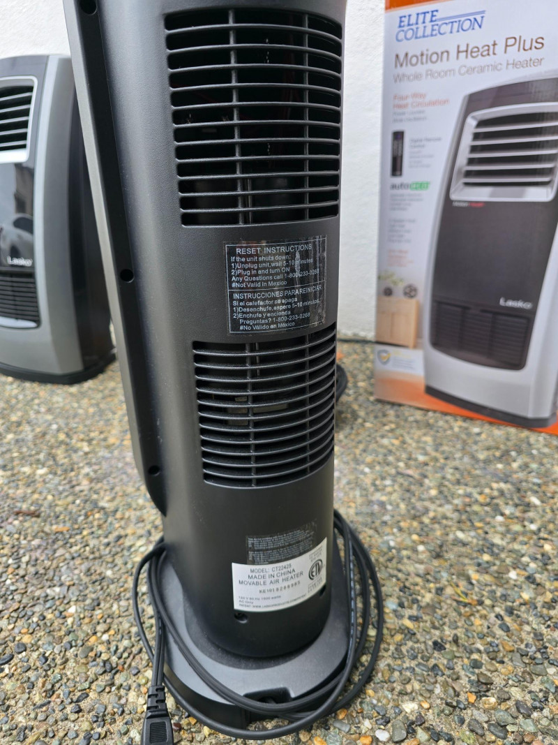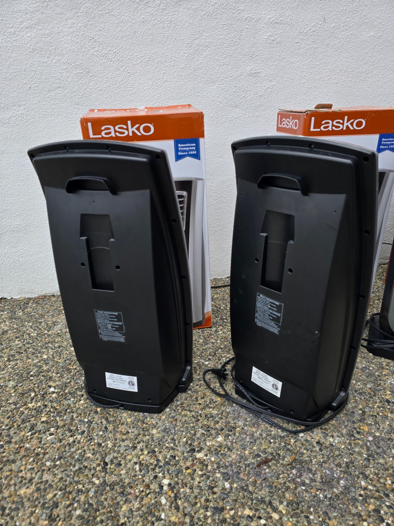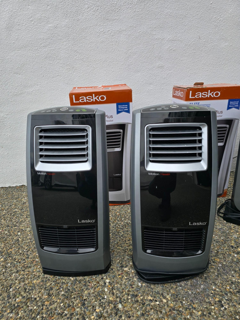 Lasko Heaters and Vornado Fan Lot includes four appliances for whole-room temperature control: Two Lasko Elite Collection Motion Heat Plus ceramic heaters with 4-way heat circulation, AutoEco™ mode, digital controls, and 1500-watt output (one remote missing) One Lasko ceramic tower heater with adjustable thermostat and remote control One Vornado whole-room air circulator fan with vortex airflow and variable speed settings Set includes: (2) Lasko Motion Heat Plus Heaters (1) Lasko Ceramic Tower Heater (1) Vornado Air Circulator Fan (1) Remote (one missing)