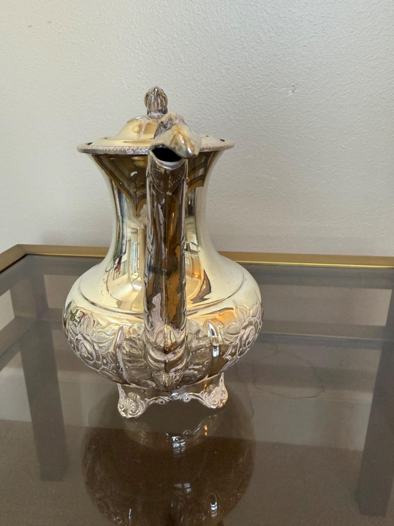 Lot # 142 - Cheffield Silverplate Tea Set – Sugar Bowl, Creamer, and Two Teapots