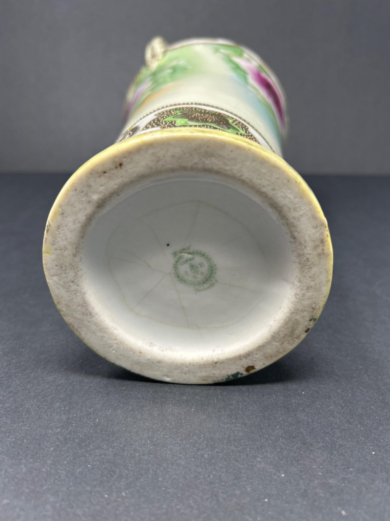 Lot # 14 - Nippon Hand-Painted Double-Handled Vase with Raised Gilt
