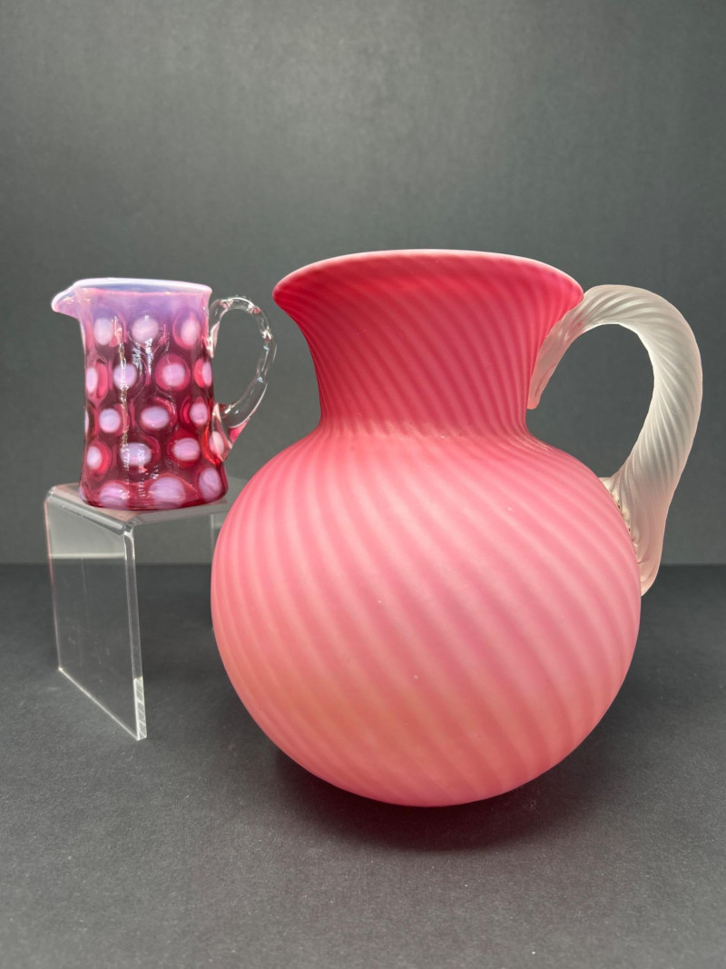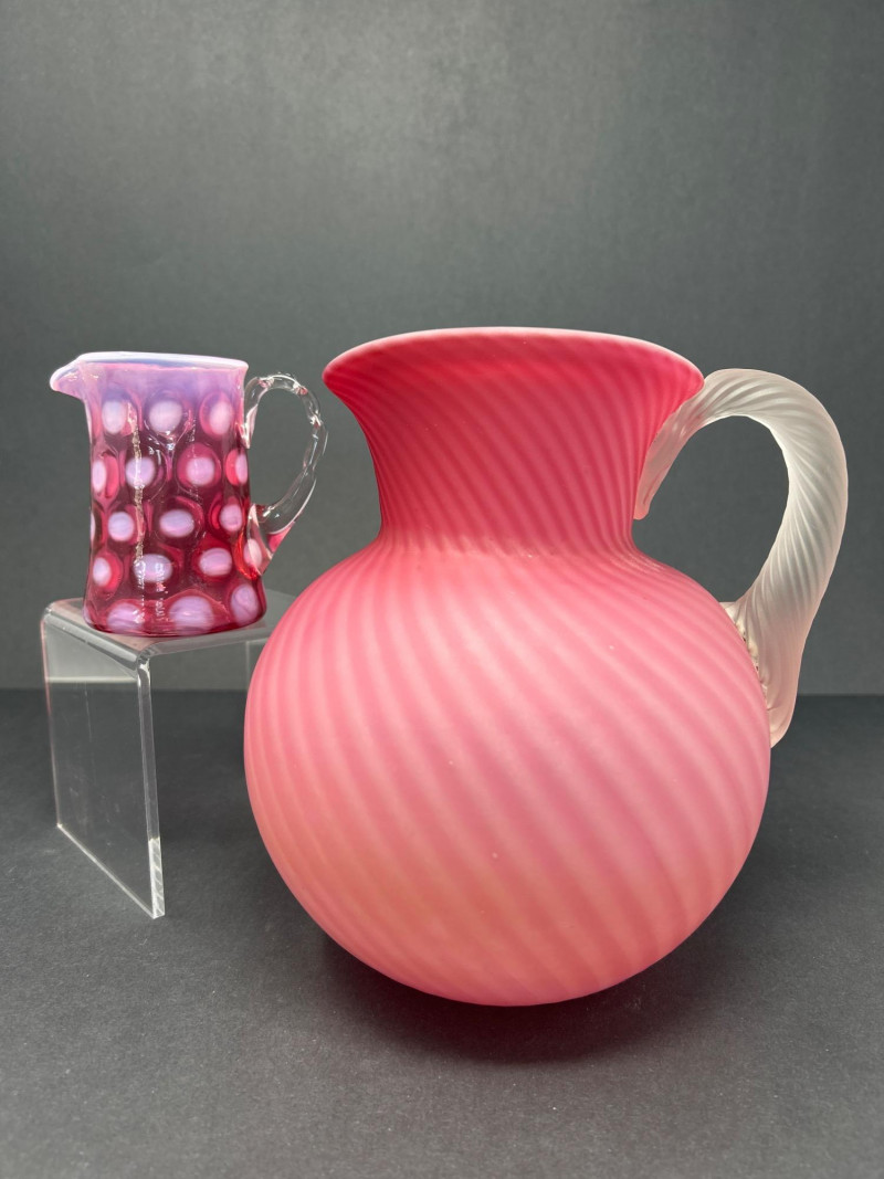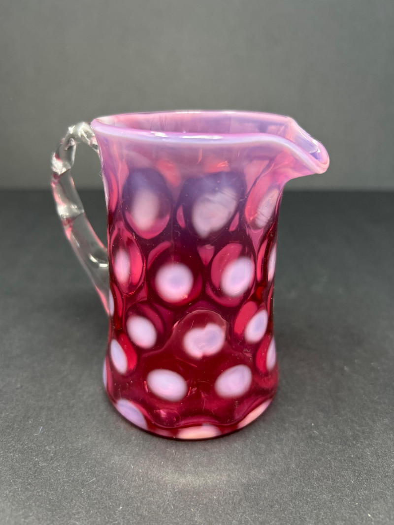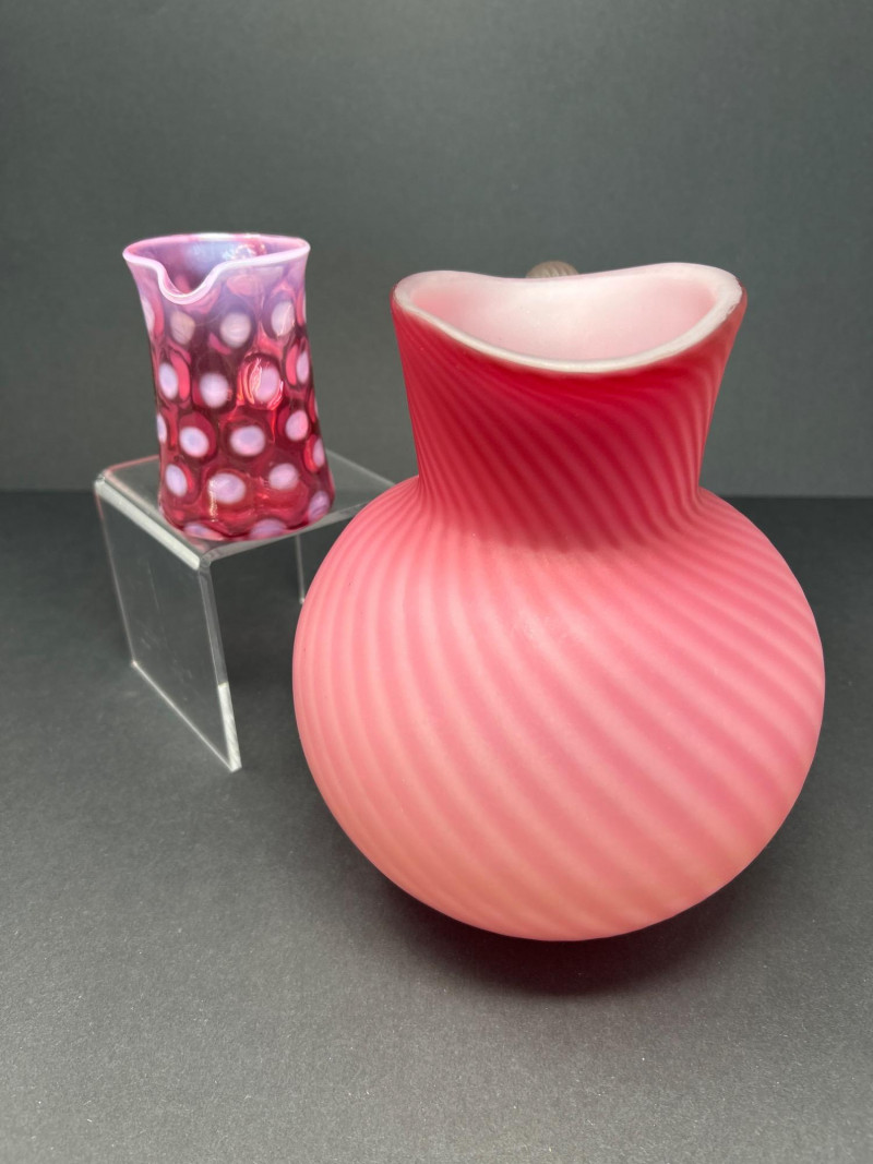 Lot # 18 - Frosted Cranberry Swirl Pitcher & Fenton Coin Dot Creamer