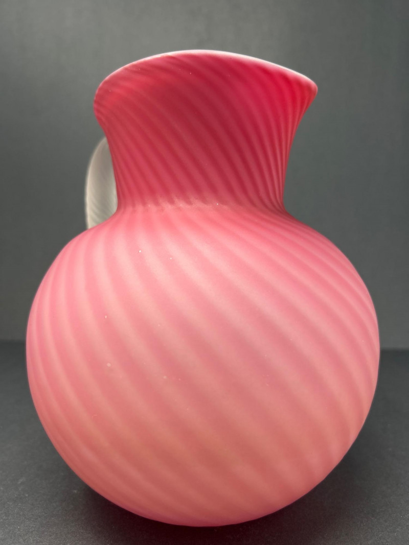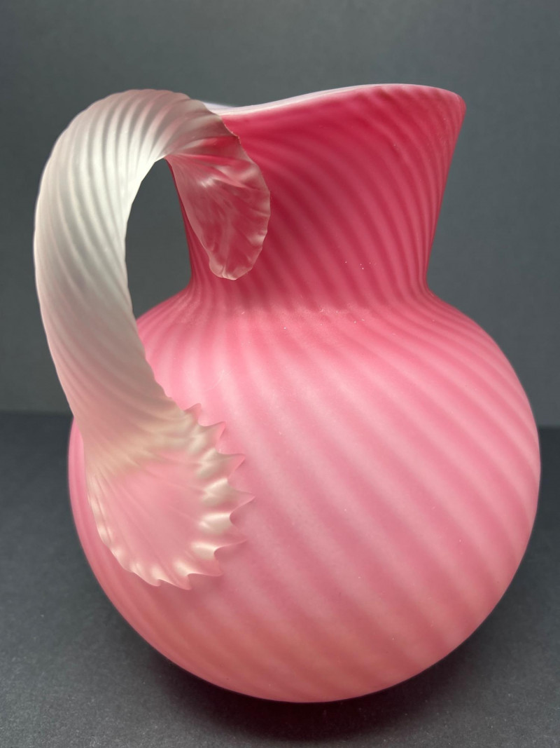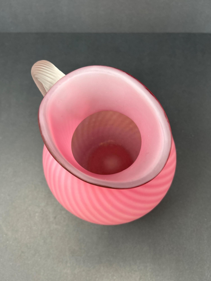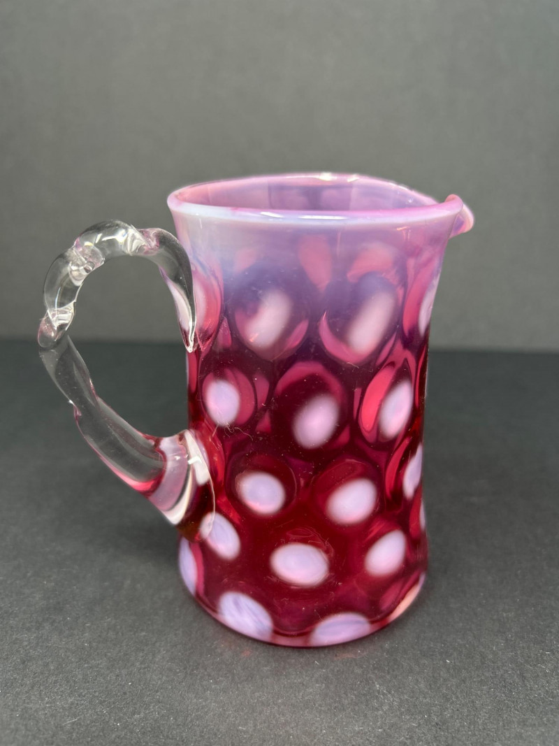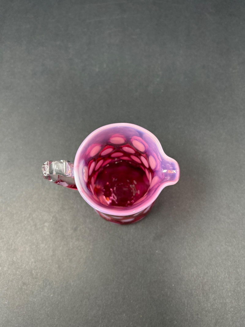 Lot # 18 - Frosted Cranberry Swirl Pitcher & Fenton Coin Dot Creamer