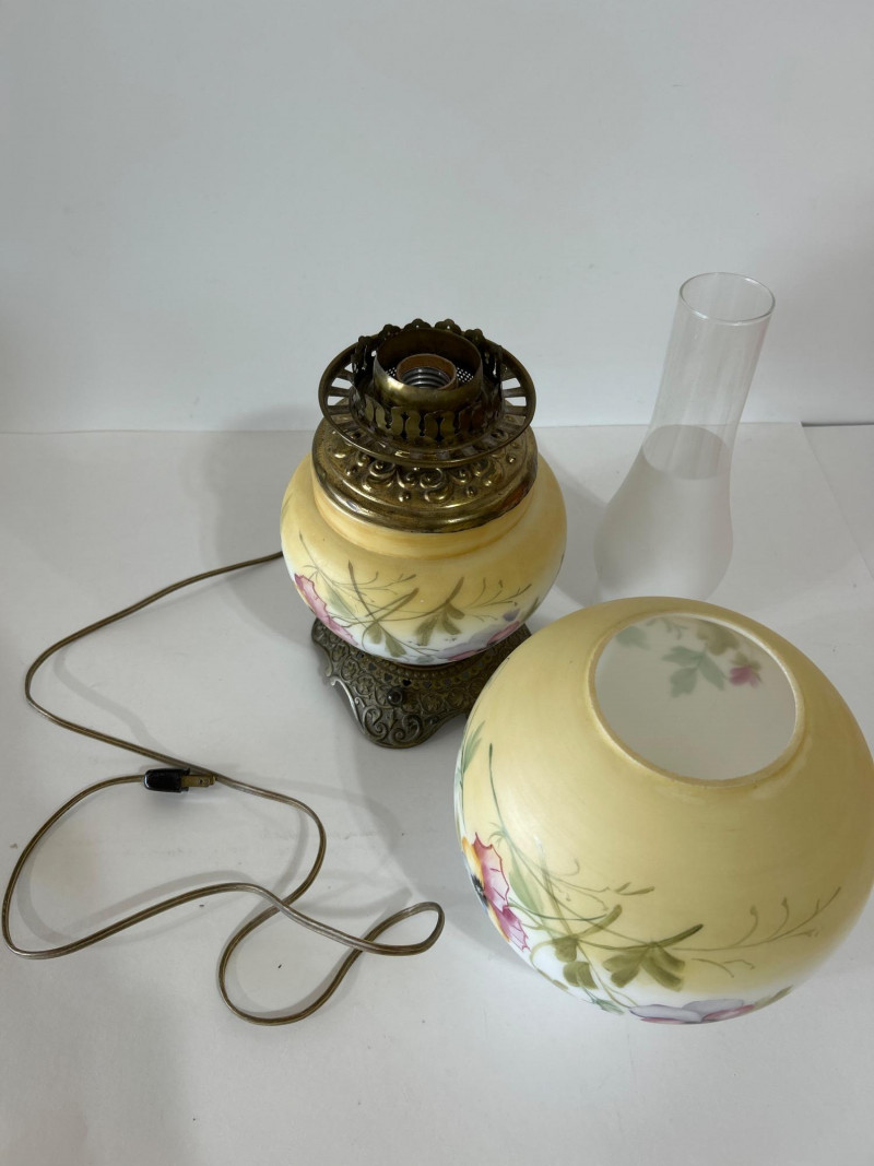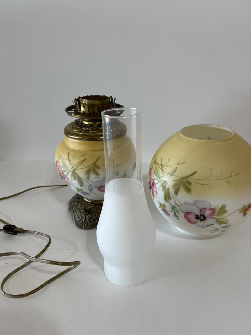Lot # 38 - Hand-Painted Hurricane Lamp with Floral Motif