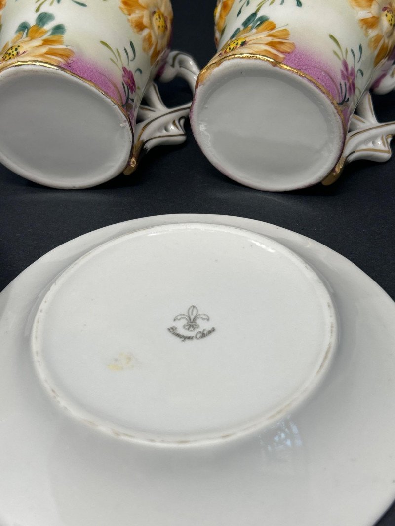 Lot # 46 - Limoges Cup & Saucer Sets – Hand-Painted Porcelain