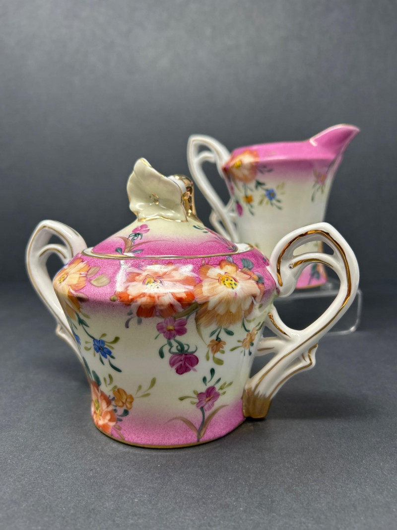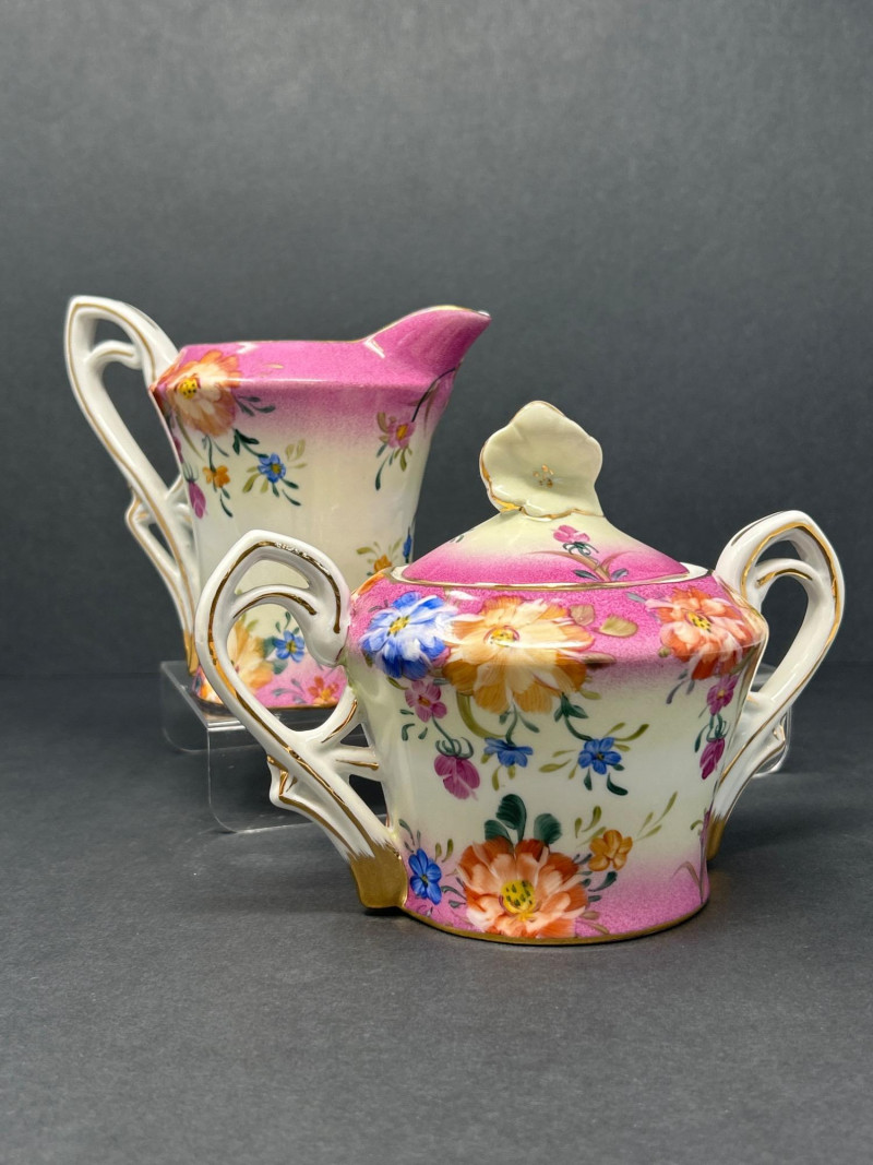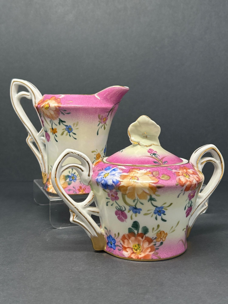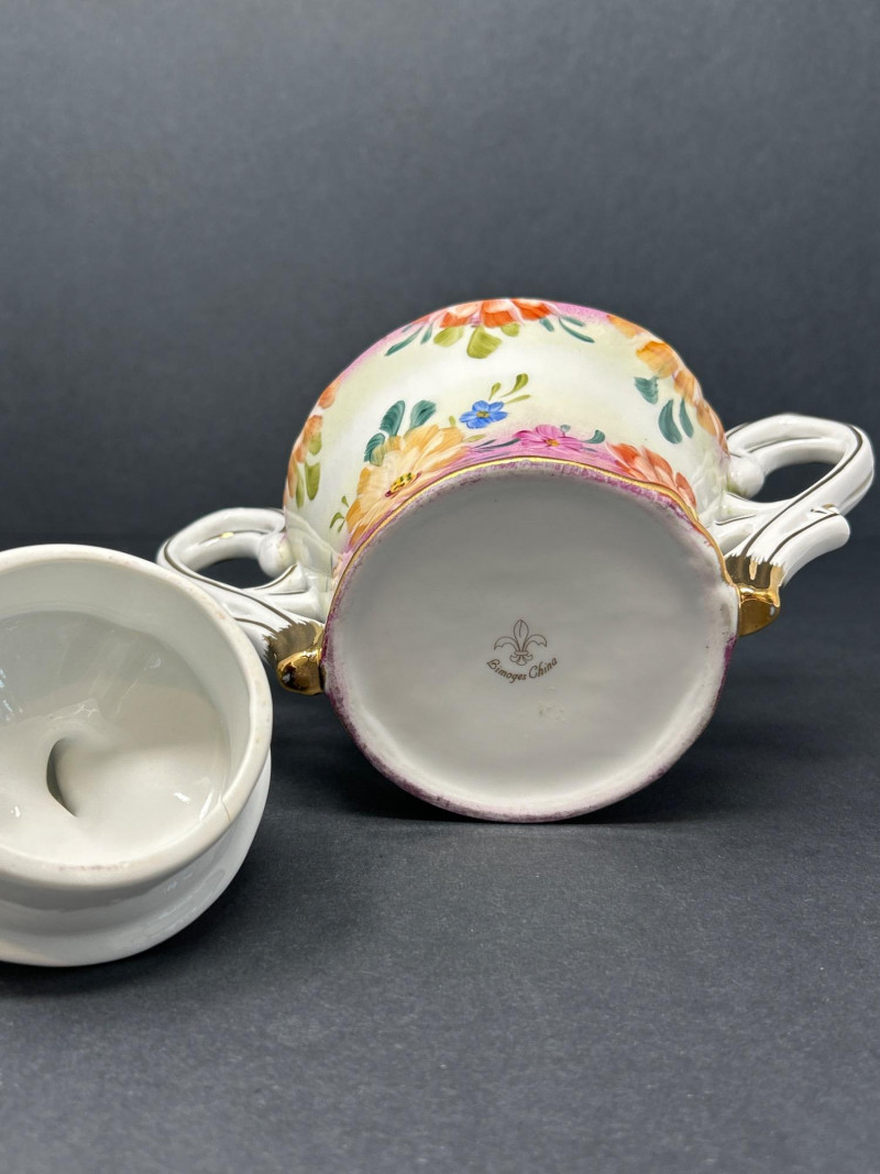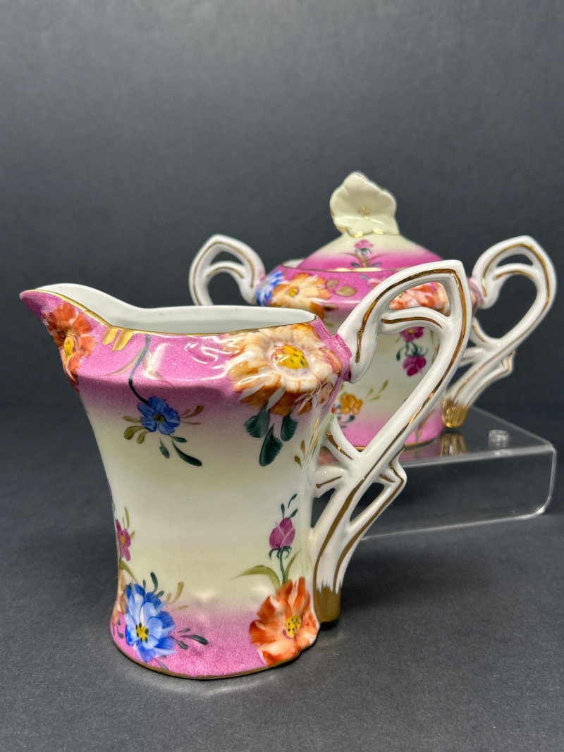 Lot # 59 - Limoges Creamer & Sugar Bowl – Hand-Painted Porcelain