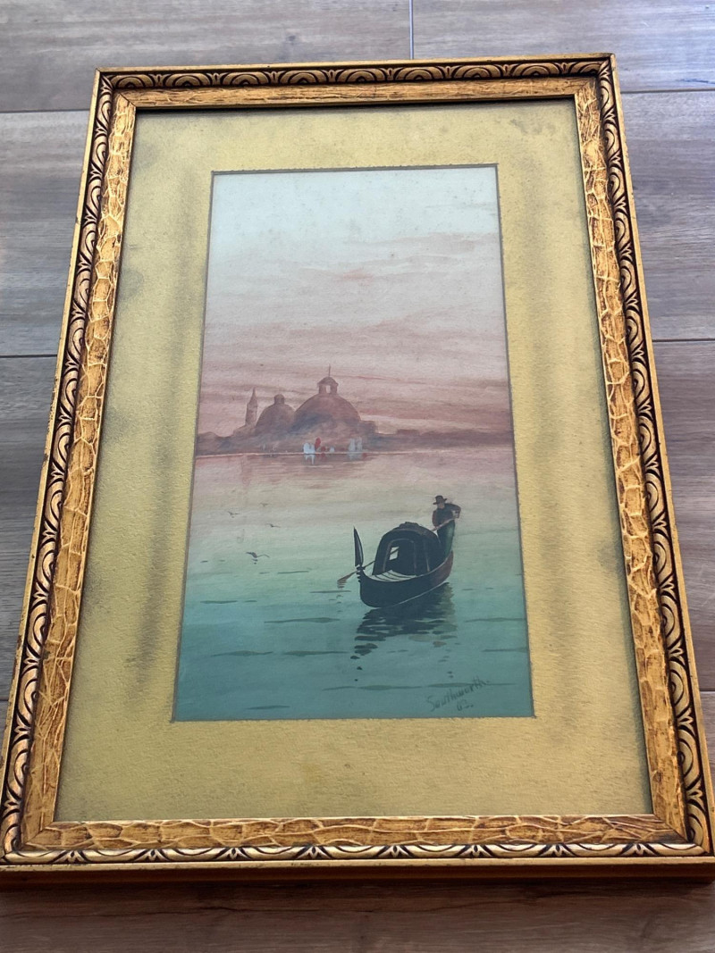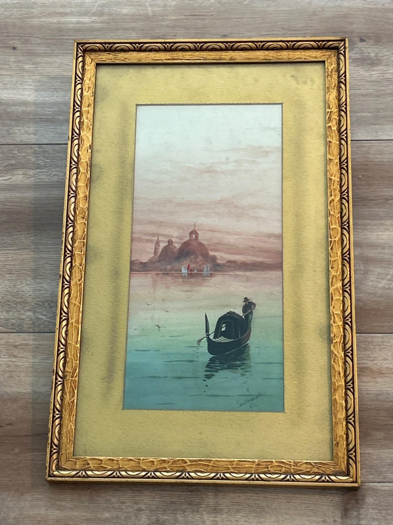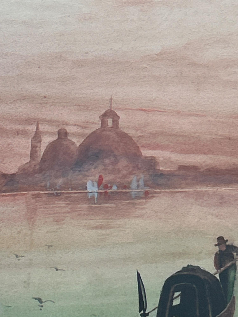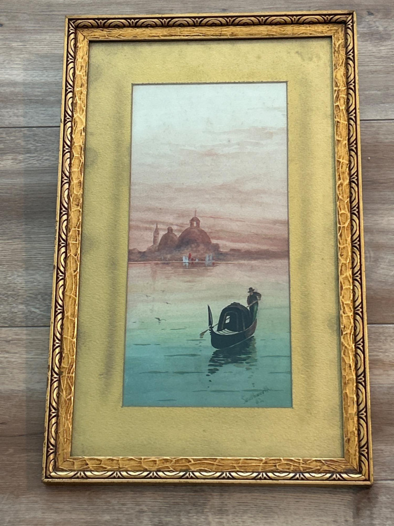 Lot # 60 - Framed Venetian Watercolor – Gondola at Dusk