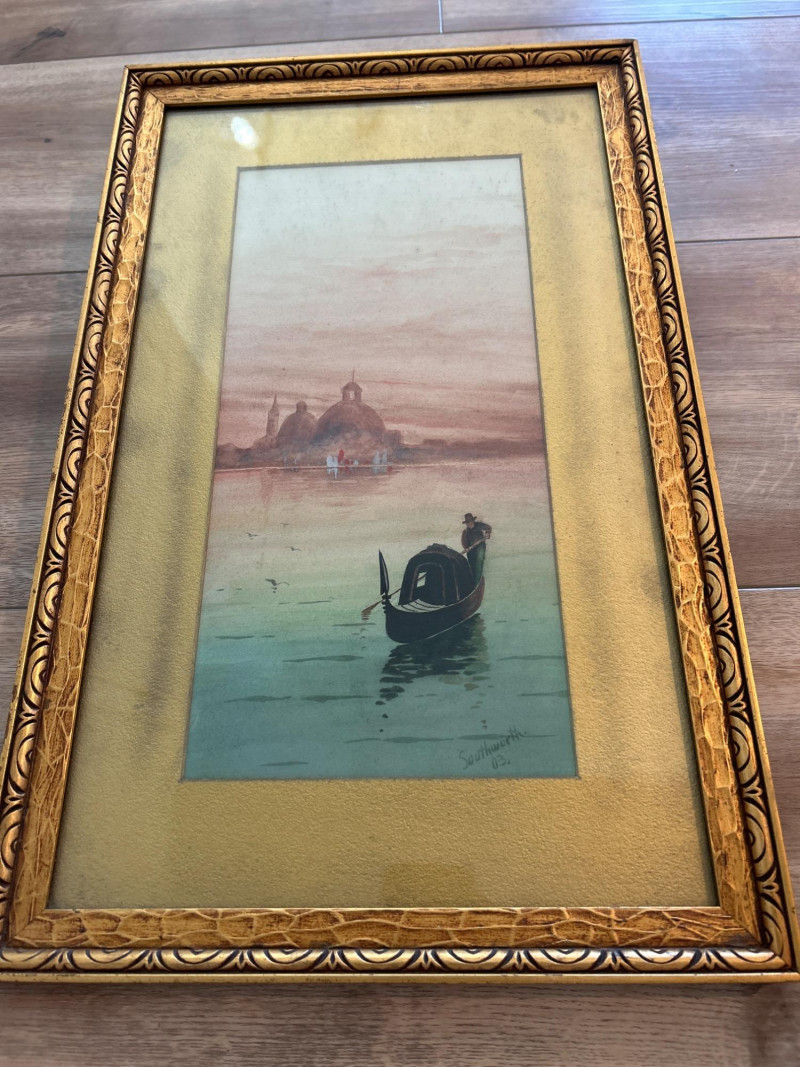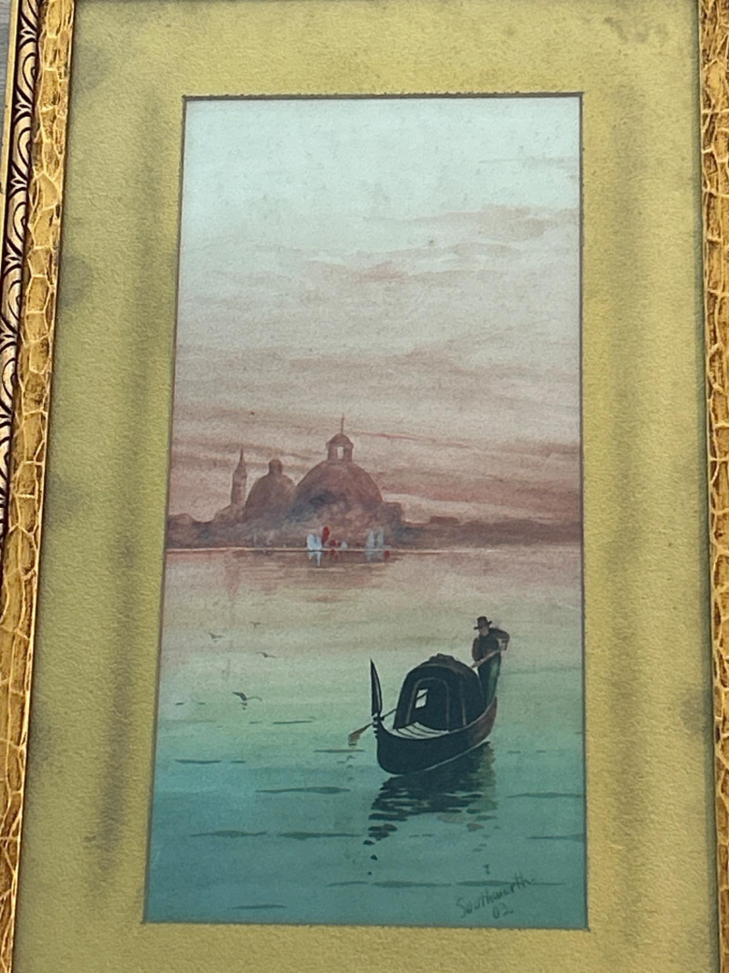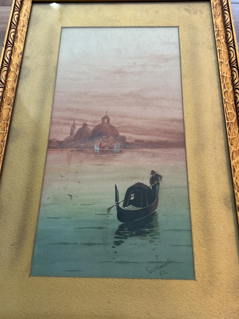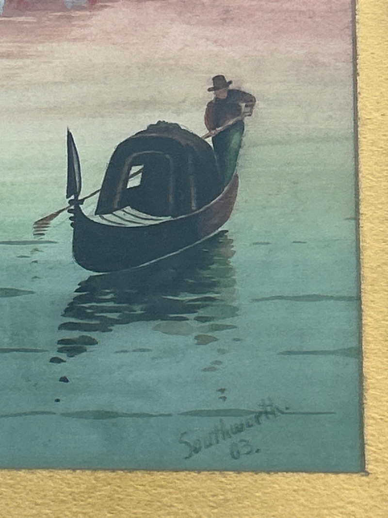 Lot # 60 - Framed Venetian Watercolor – Gondola at Dusk