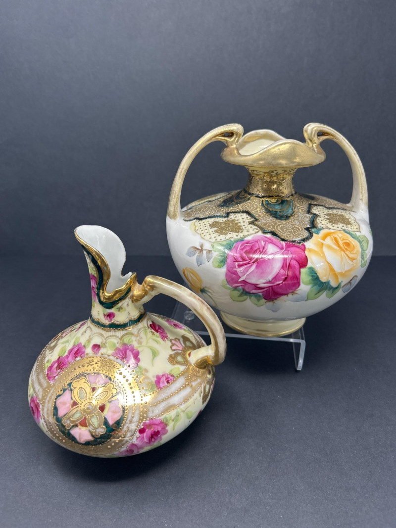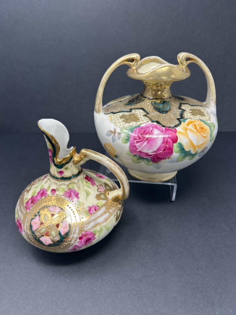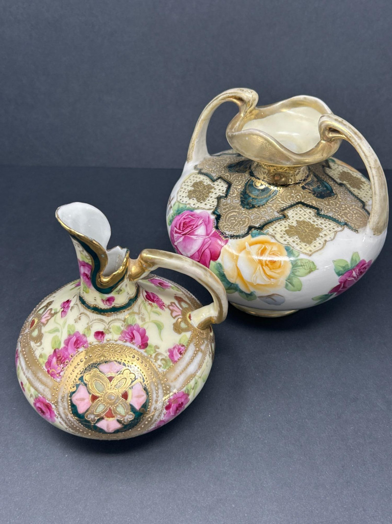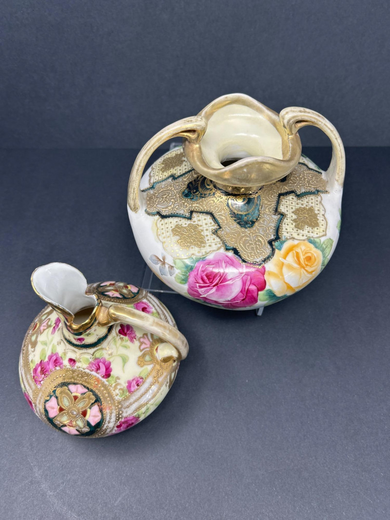 Lot # 68 - Nippon Vase & Pitcher Set – Hand-Painted Moriage with Gilded Roses