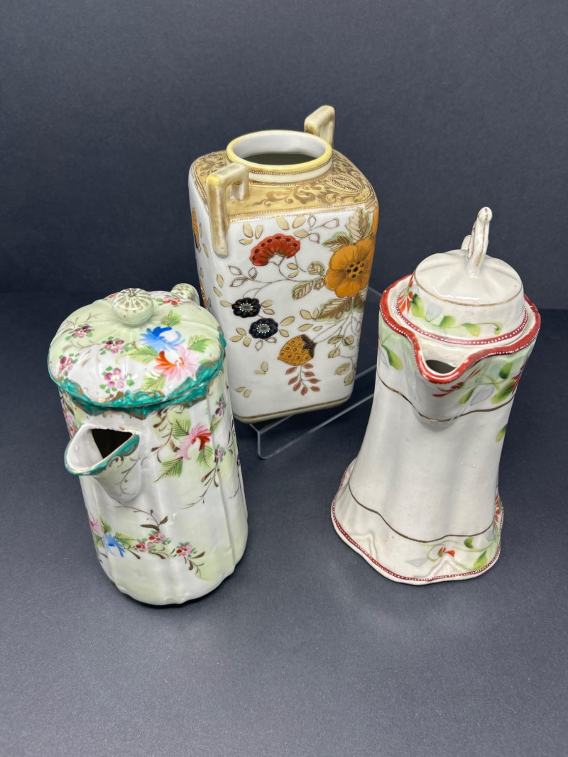 Lot # 70 - Nippon set- Two chocolate pots & One Ginger Jar