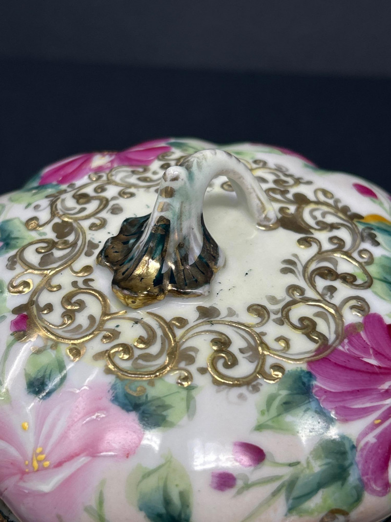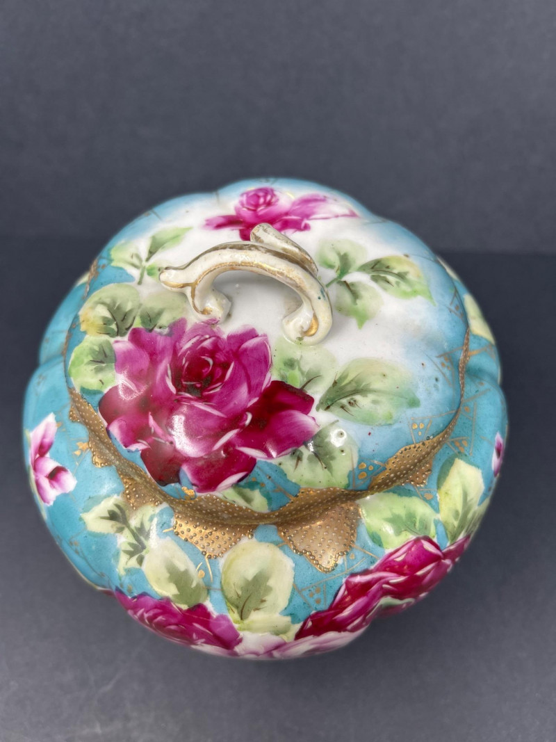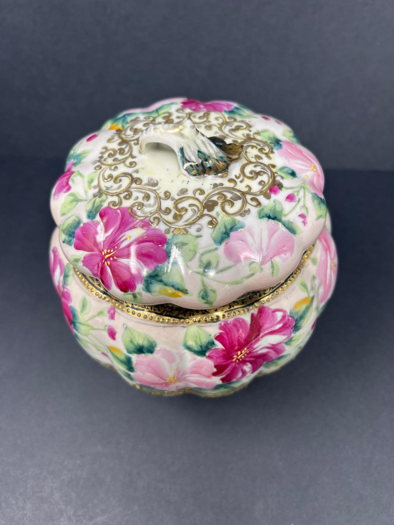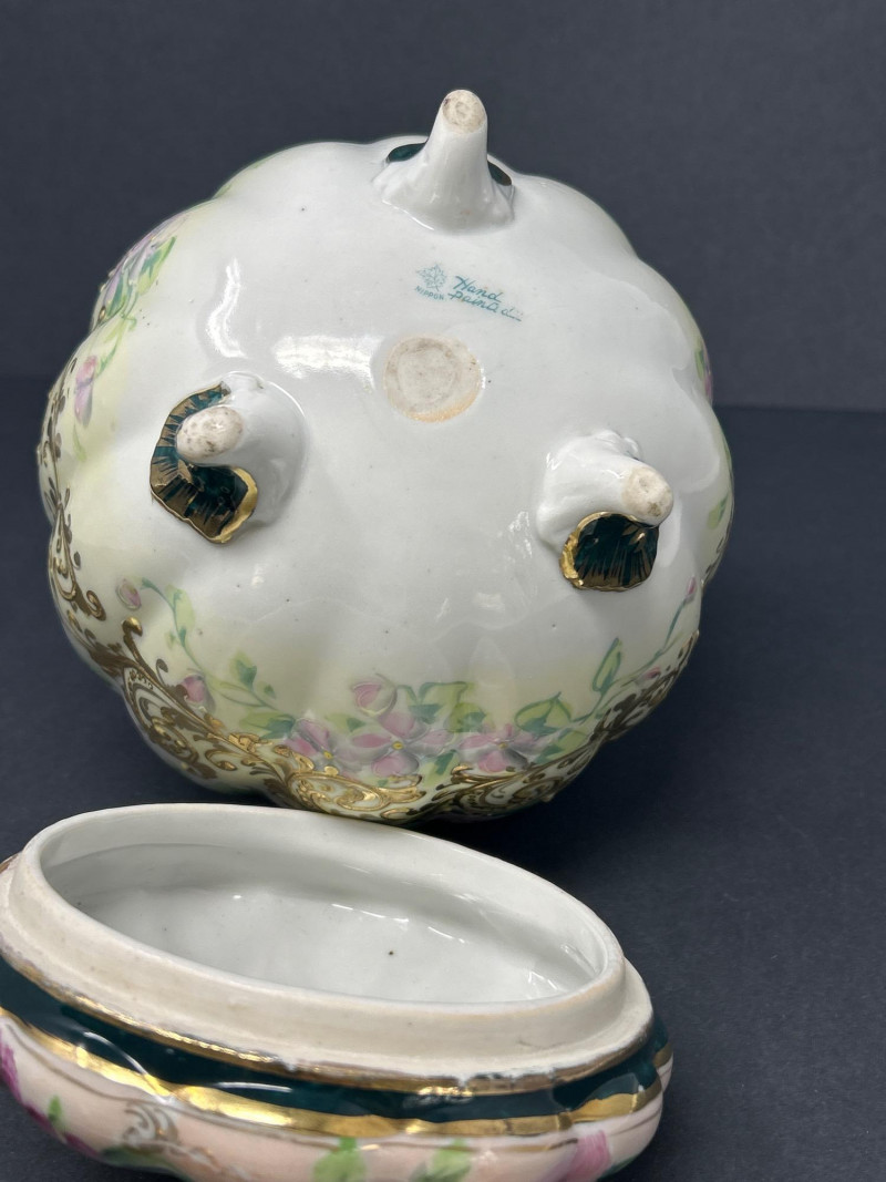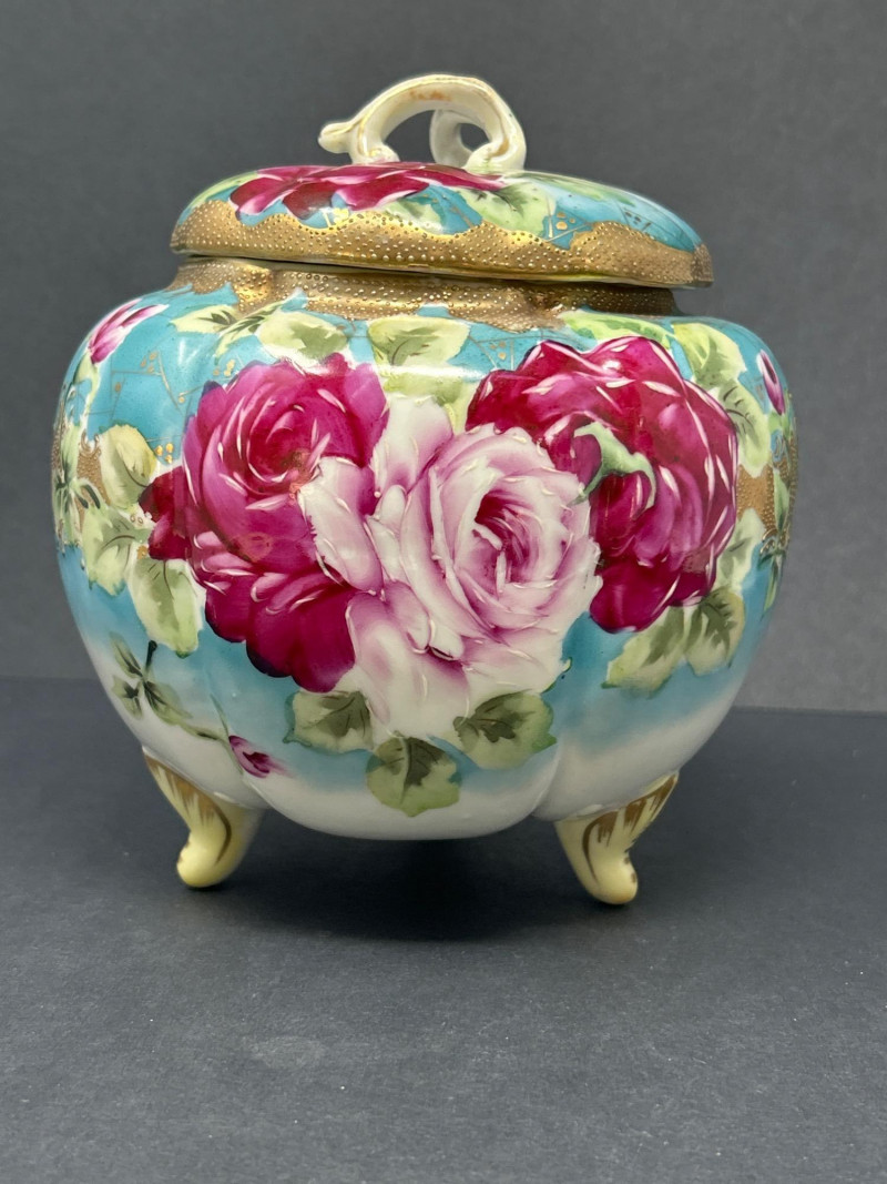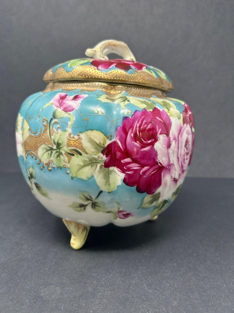 Highly collectible for lovers of Nippon porcelain and Victorian tableware. These jars serve beautifully as decorative accents or functional storage for confections or keepsakes.