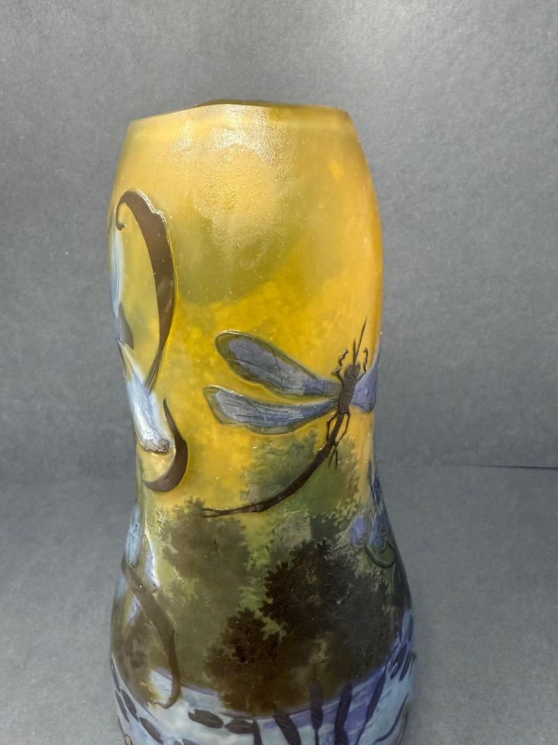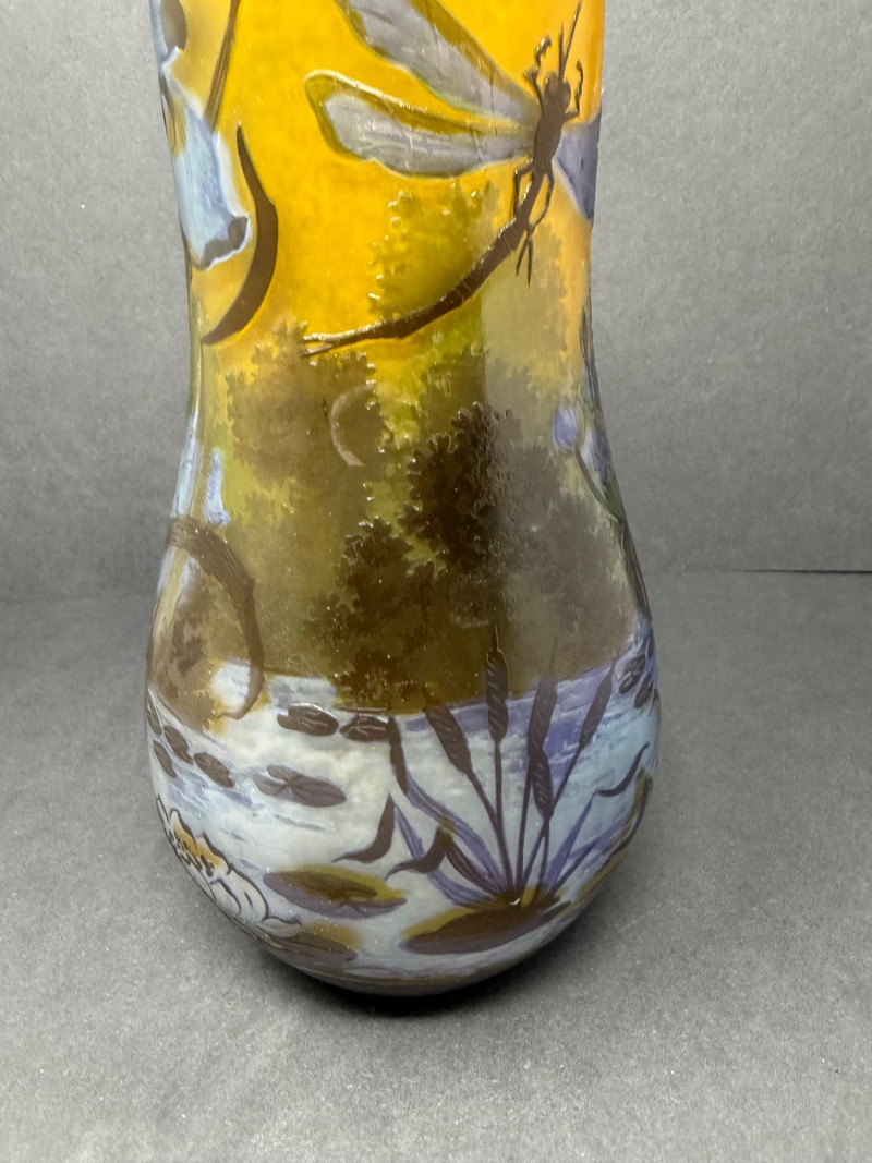 Lot # 98 - “Gallé” Marked Cameo Glass Vase – Nature in Flight