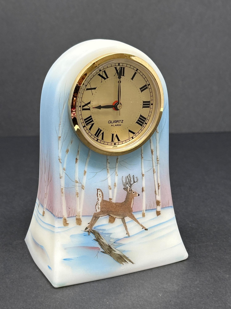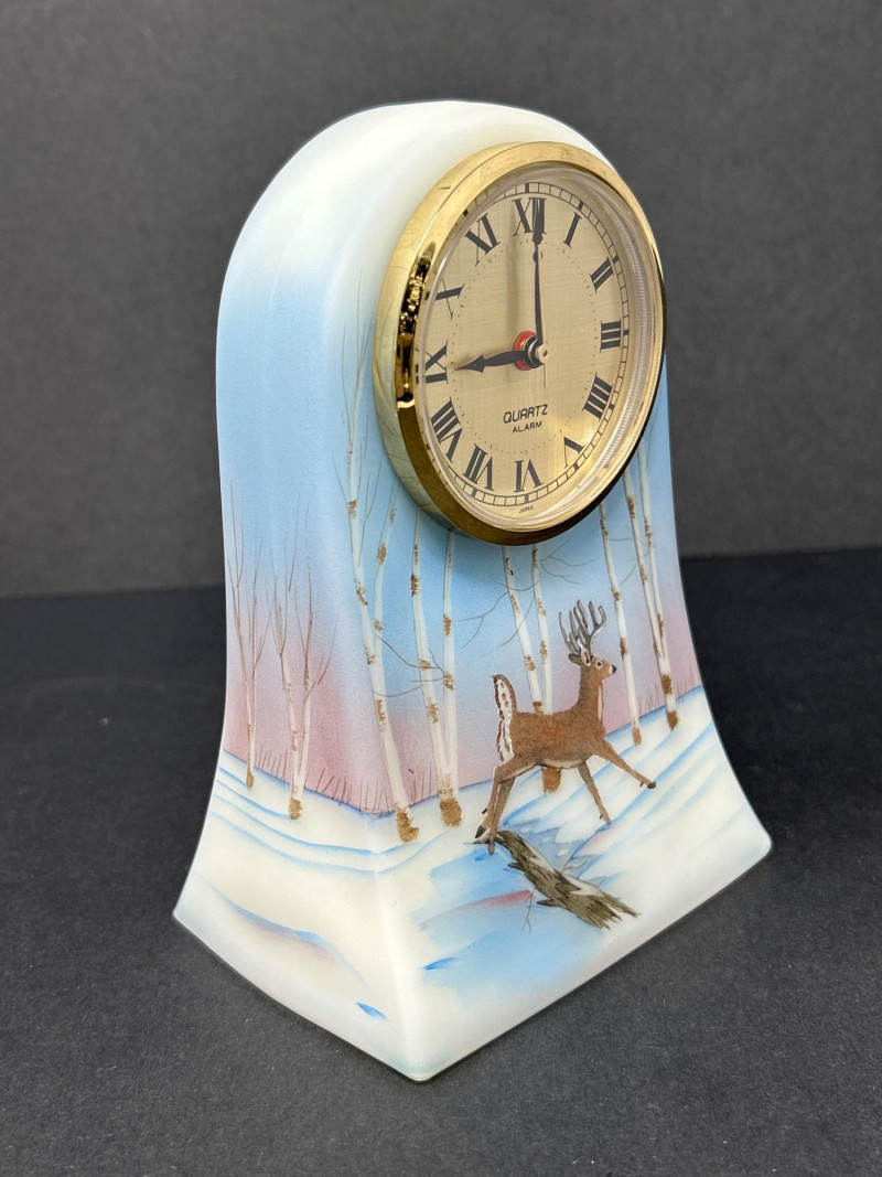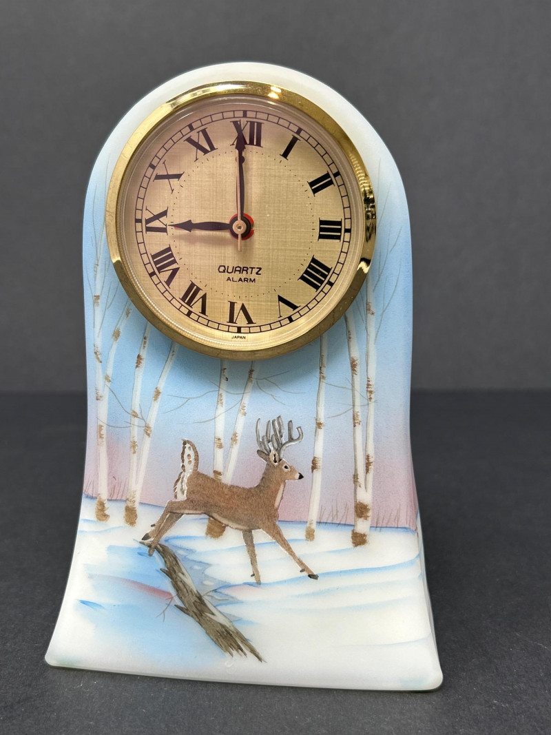 Lot # 87 - Fenton Hand-Painted Deer Clock – Signed Debra Hill, Limited Edition