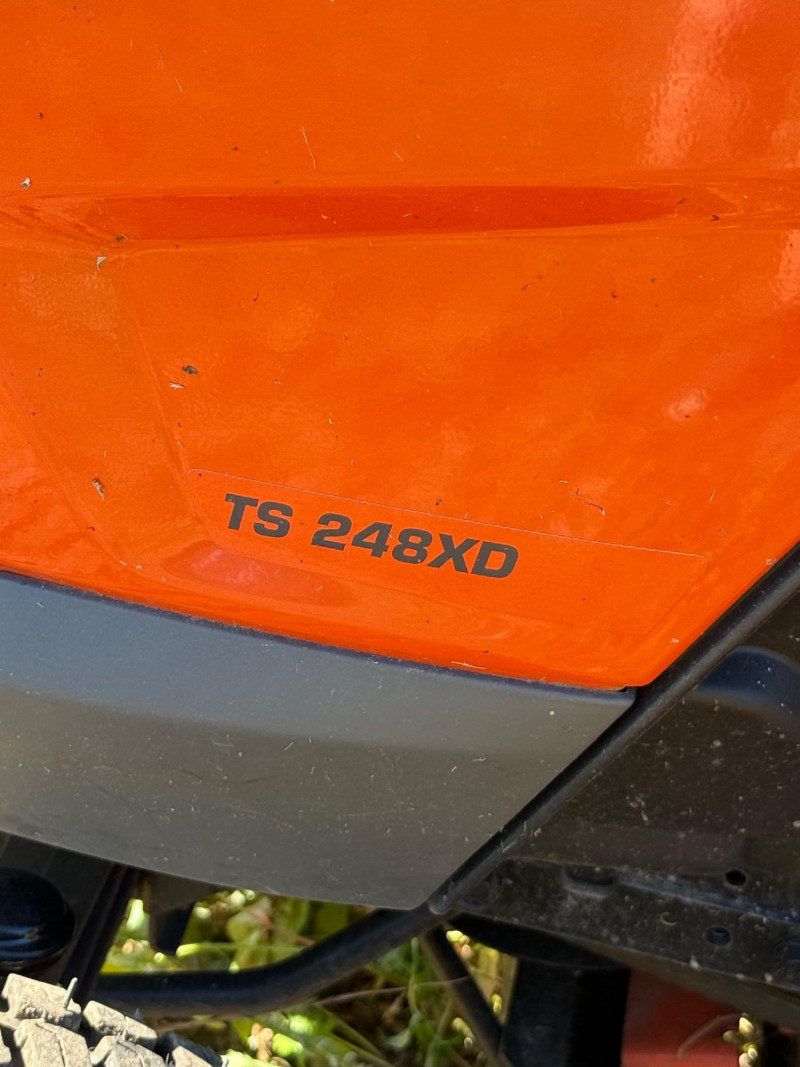 Overview Engine and Performance Cutting System Comfort and Usability Durability and Design Model Year and Availability Whether you’re mowing an acre or navigating uneven terrain, the TS 248XD blends performance, durability, and comfort into a well-rounded machine that stands out in its class. Hardly used with 58 hours indicated. Unsure if attachments pictured belong with this piece of equipment. Found in separate location. Was tested and powered up. Lights and dashboard powered up.