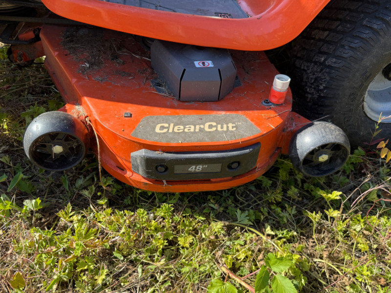 The 48-inch ClearCut fabricated steel deck is engineered for long-lasting performance and superior cutting quality. Its welded 10-gauge steel construction resists wear, while the deck design enhances airflow for efficient mulching, side discharge, or bagging. The cutting height can be easily adjusted to suit a variety of grass types and conditions.
