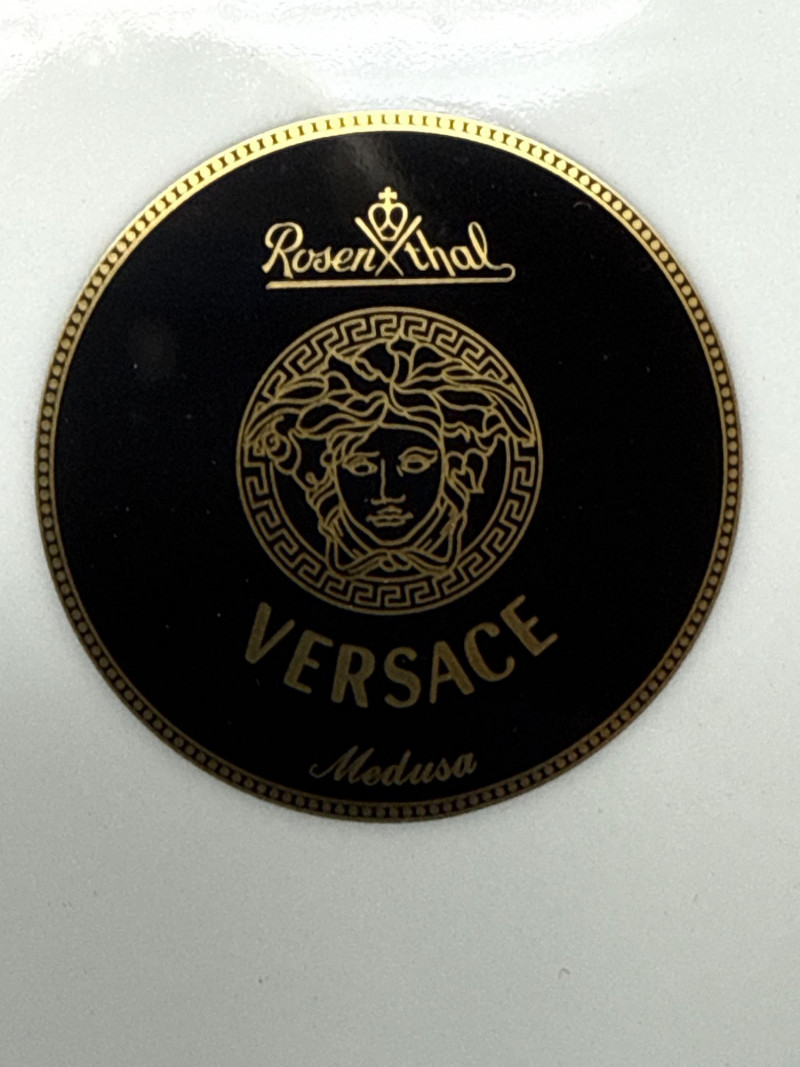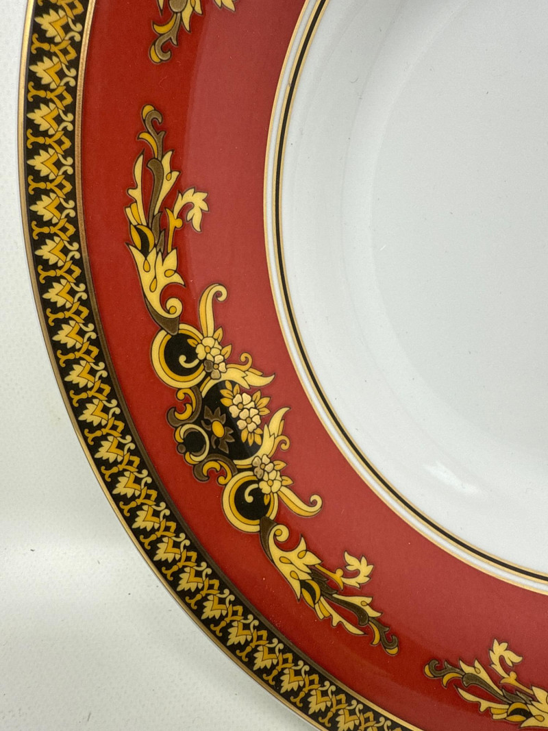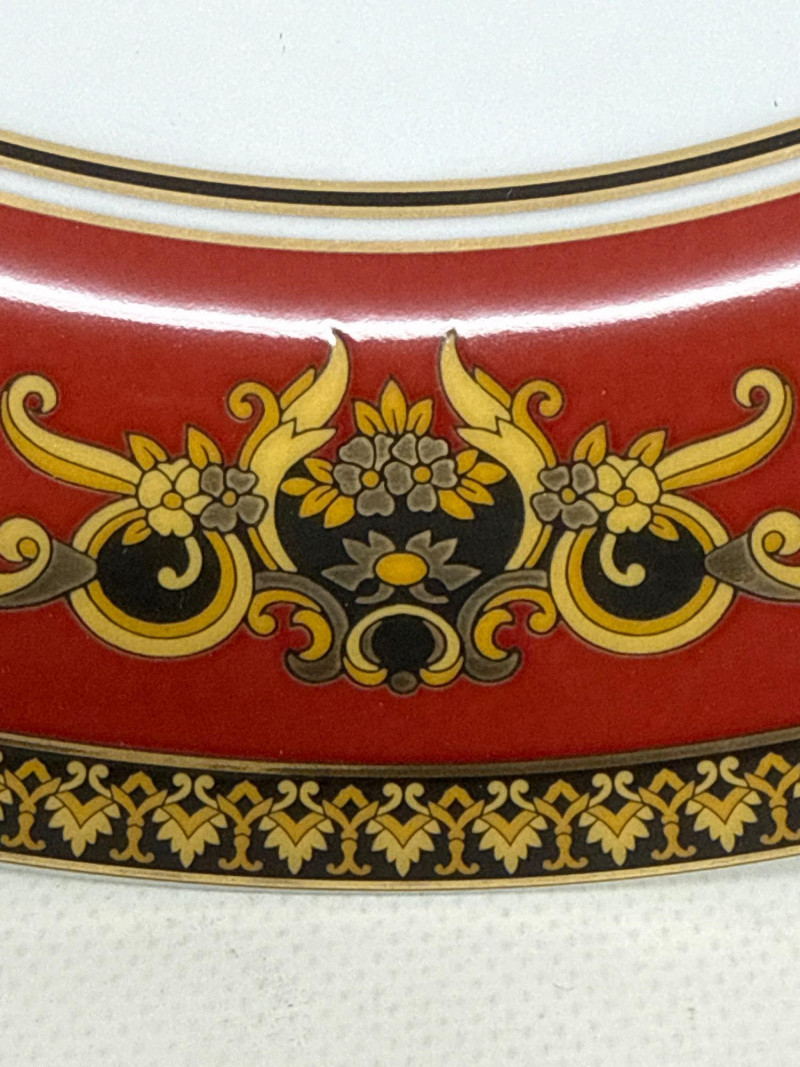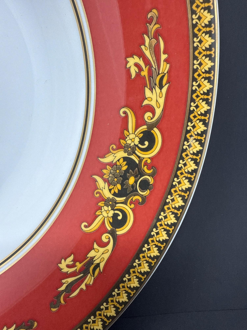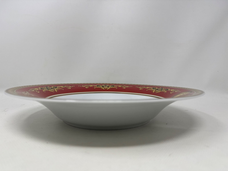 Striking Versace “Medusa Red” porcelain bowl, crafted in collaboration with Rosenthal. This 12" service bowl showcases the iconic Medusa head motif in vivid red and gold detailing, emblematic of Versace’s opulent design language. Design Features Produced by Rosenthal under the “Meets Versace” collection Bold red background with intricate gold accents and central Medusa emblem Made in Germany; fine porcelain construction Diameter: 12 inches Condition