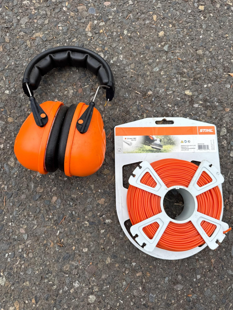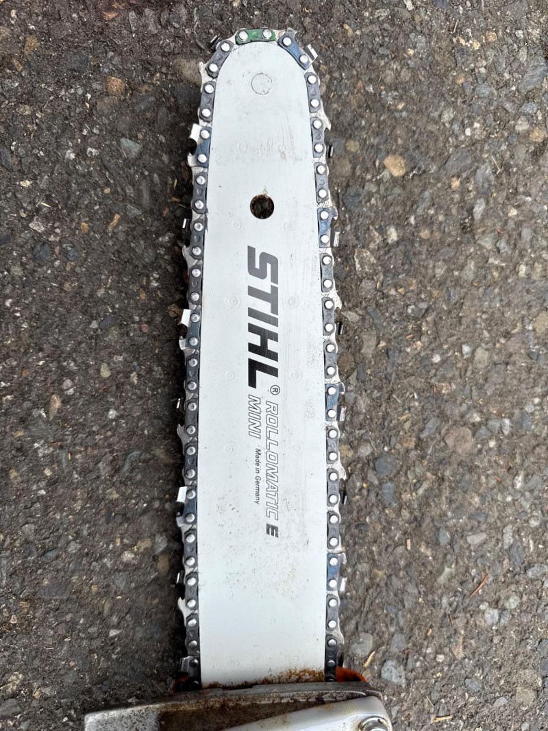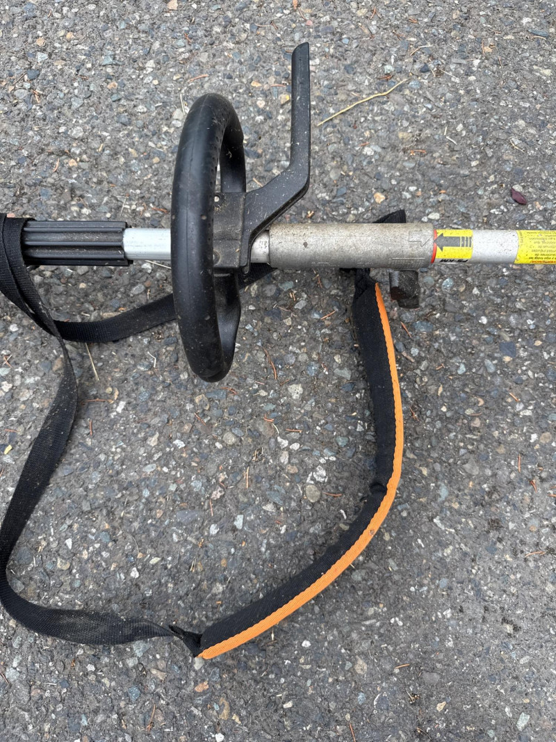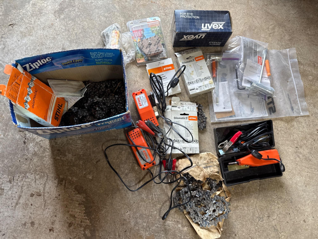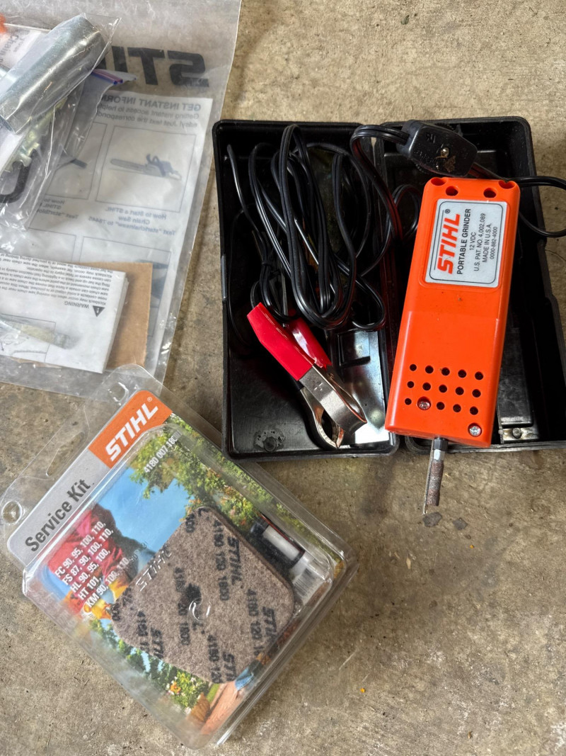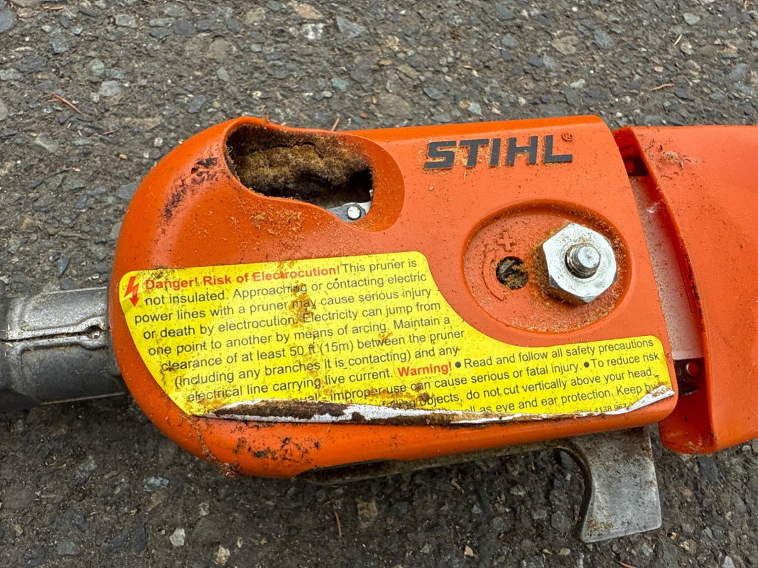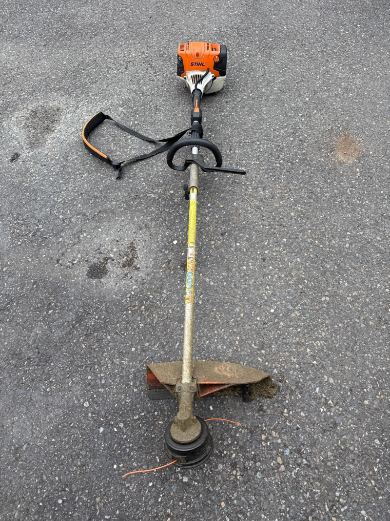 Stihl Gas Powered Trimmer Model KM111R Hedge Trimmer Attachment Hearing Protection Gear New Pack of Trimmer Cable Extra extension pole added Powers up very easily, indicating good working condition. Comes with essential accessories for safe and effective use. Several chains, grinder tools, repair kit, chaps, eye protection and more have been added. Included Items: