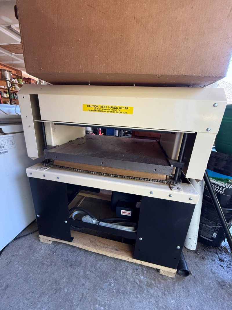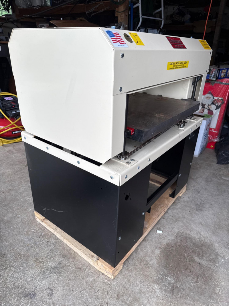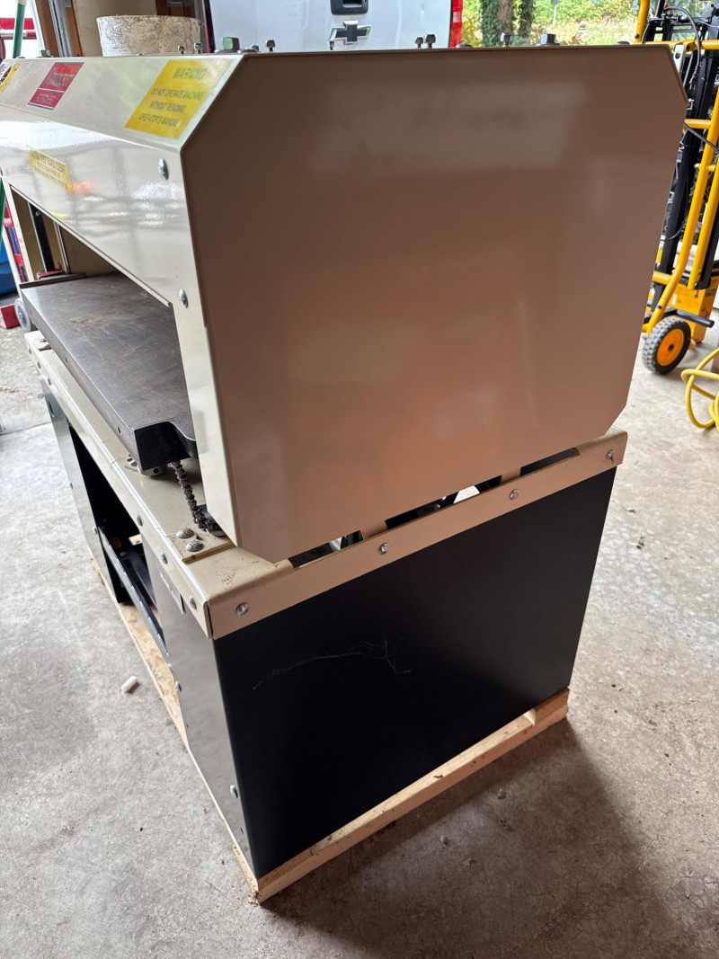 Built for serious woodworking and industrial performance, this vintage wood planer features a robust Leeson motor known for its reliability and high torque output. The planer sits on a sturdy steel tabletop and includes an integrated safety shield, making it a functional and dependable tool for professional carpenters, restoration experts, and serious hobbyists. Motor: Equipped with a high-quality Leeson motor Construction: Durable steel table supports heavy stock Safety: Includes fixed safety guard for operator protection Functionality: Ideal for planing wide boards and large pieces Condition: Never used. Unwrapped for photos. Rust on steel roller/knife may be from sitting. Superficial. Perfect For: Industrial workshops, woodworking professionals, tool collectors Still attached to pallet. Extra boxes contain more parts and hardware. Large box contains mobile planer base. Manuals and documentation included. EXTREMELY HEAVY. MUST BRING HELP AND EQUIPMENT TO LOAD. Easy load location.