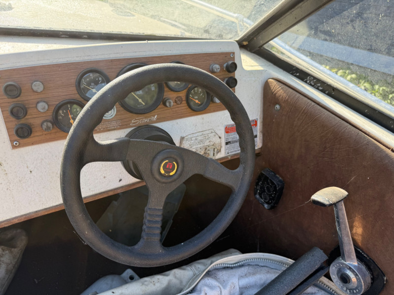 This 1977 Seaswirl power boat comes with a durable EZ Loader trailer, offering a classic recreational setup for boating enthusiasts or marine collectors. The boat shows signs of extended outdoor storage and general wear and may require mechanical or cosmetic attention before use. With an active Washington registration (WN 818 CM), it’s still a promising project for those with restoration skills or a DIY spirit. Year: 1977 Make: Seaswirl, 18ft long Trailer: EZ Loader – adjustable and rugged for easy hauling Registration: WN 818 CM displayed on hull Condition: Used – shows weathering and may need mechanical servicing Use Case: Ideal as a fixer-upper, parts donor, or restoration project Pickup Location: Per auction terms – no loading assistance availableDescription
