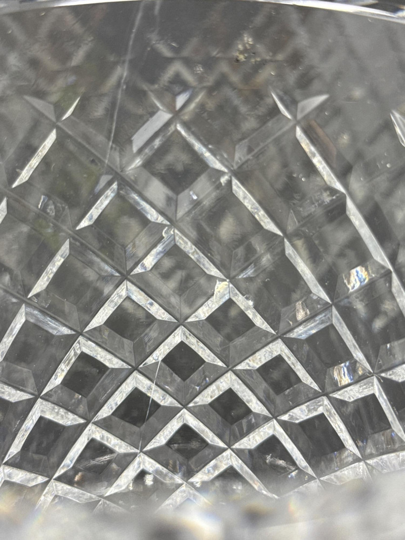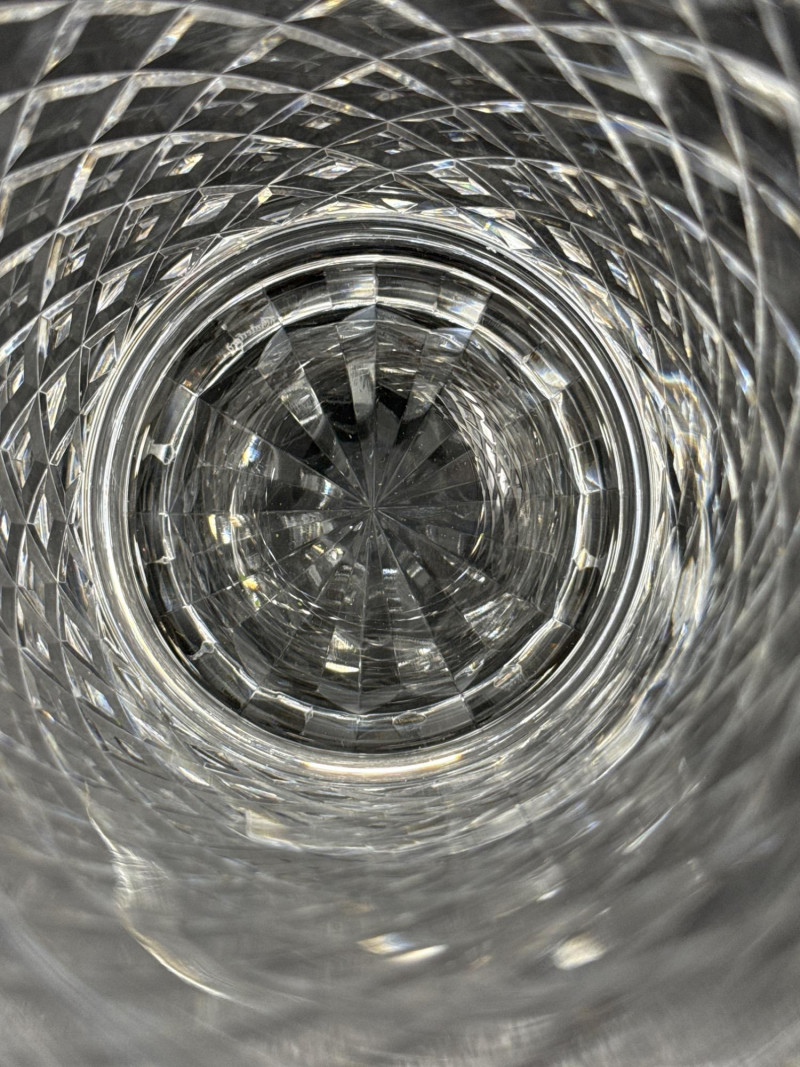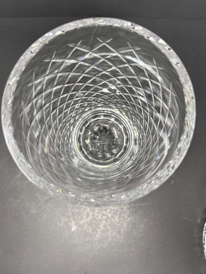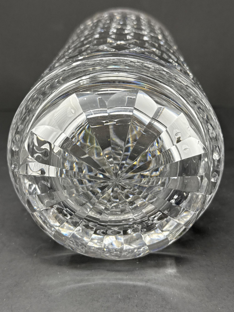 Timeless Waterford crystal vase in the elegant “Alana” pattern, known for its intricate crisscross cuts and luminous clarity. This 10-inch vase embodies the refined craftsmanship of Irish lead crystal production. Design Features Waterford “Alana” pattern featuring cross-cut lattice design Hand-cut lead crystal with glossy finish and flared rim Acid-etched Waterford mark on base; produced in Ireland Dimensions: 10 inches Height x 4½ inches Width Condition