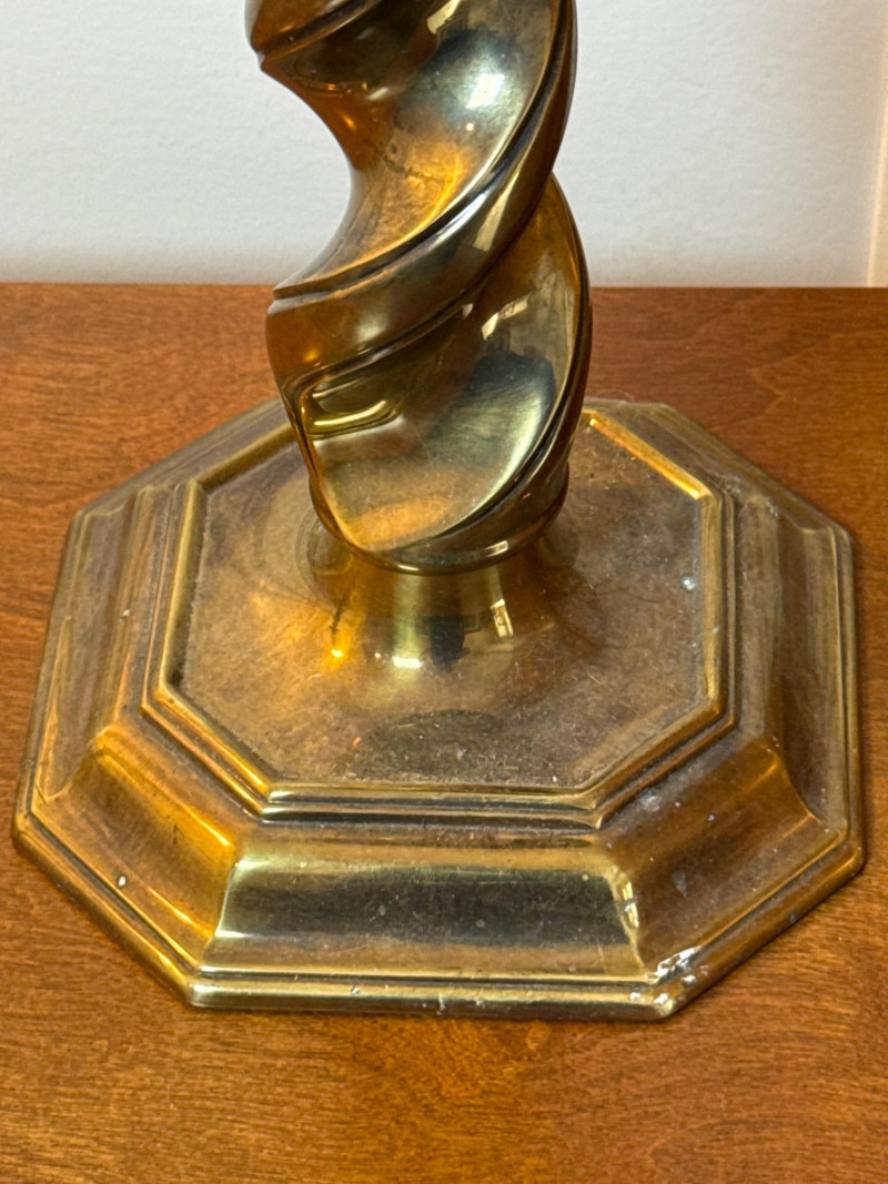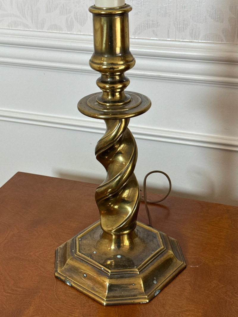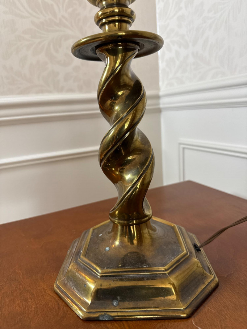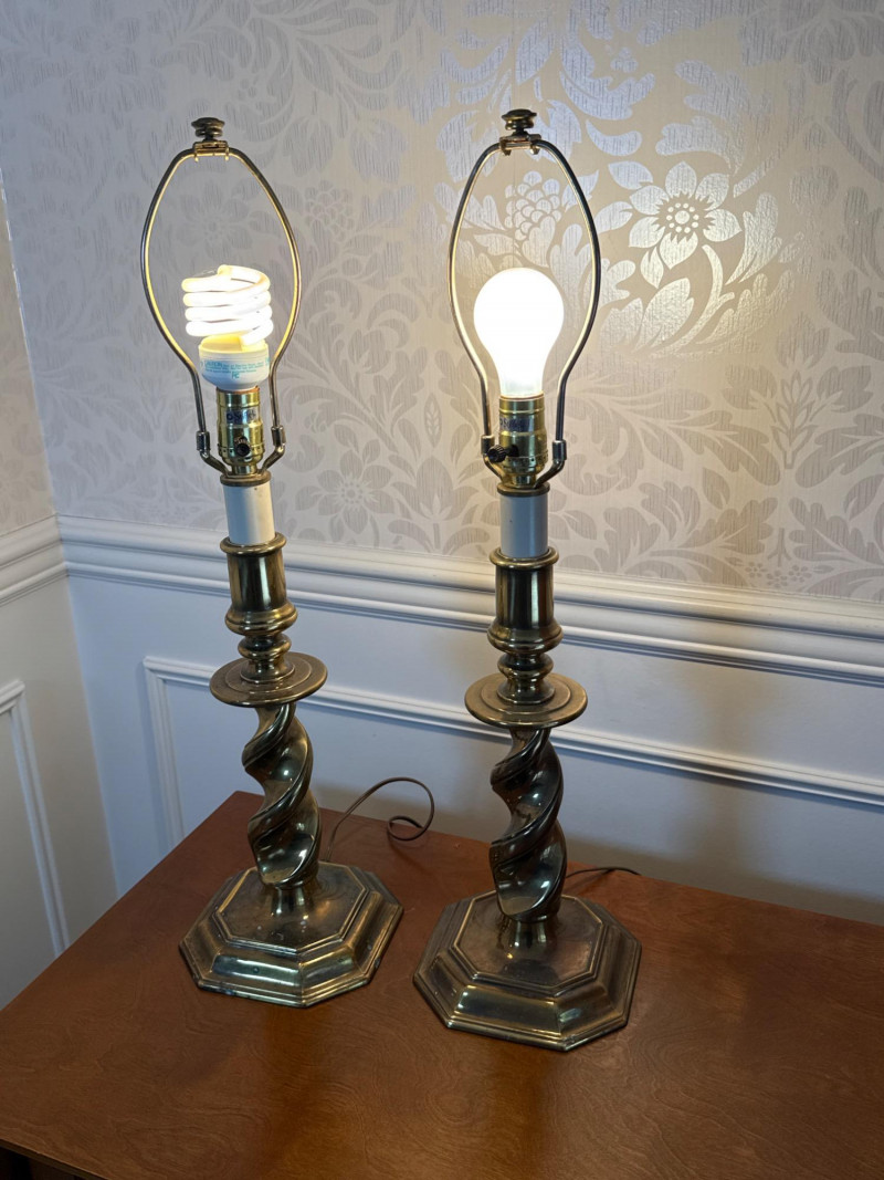 Maker: Stiffel — Renowned American manufacturer known for high-quality, classic lighting designs since 1932. Style: Traditional Elegance with a twisted brass column design, evoking timeless sophistication and mid-century charm. Size: Height: 27 inches Base Diameter: 7.5 inches Material: Solid Brass — Features a heavy, durable base that reflects Stiffel’s commitment to craftsmanship and quality. Condition: Excellent Working Condition — Both lamps power on successfully. Note: Lamps are sold without shades. Cosmetic Condition: Minor surface wear consistent with age; no major dents or damage.