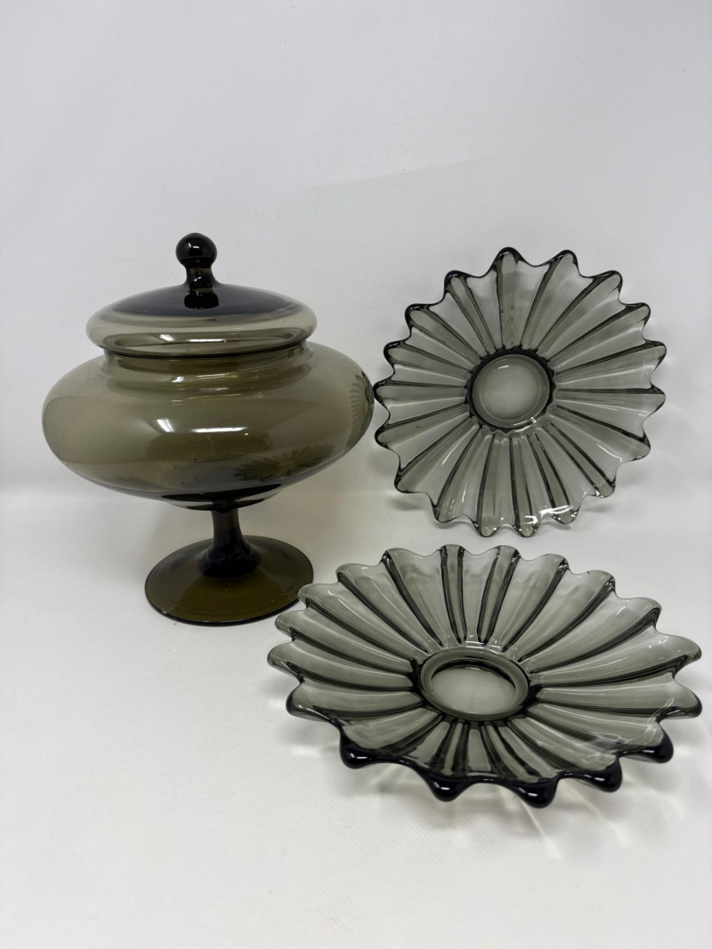 Lot # 38 - Mid Century Smoked Glass Compote and Plates