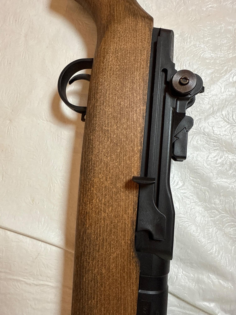 Make & Model: Manufacturer: Springfield Armory Model: .22 Caliber Air Rifle Caliber: .22 caliber (air-powered, not firearm ammunition) Features: Classic single-shot air rifle design Hardwood stock with smooth finish Iron sights for basic target acquisition Manual safety mechanism Approximate overall length: 46 inches Lightweight and easy to handle—ideal for target practice or small pest control Condition: Appears to be in good vintage condition with minor wear consistent with age Stock shows light surface marks but no cracks or structural damage Metal components retain original finish with some patina Mechanism functions smoothly; not tested for firing accuracy No major repairs or modifications observed As an air rifle, this item is not classified as a firearm under federal law No background check or FFL transfer required for purchase or pickup Buyers must be 18 years or older to bid and take possession Local laws may vary—please verify compliance with your jurisdiction before bidding