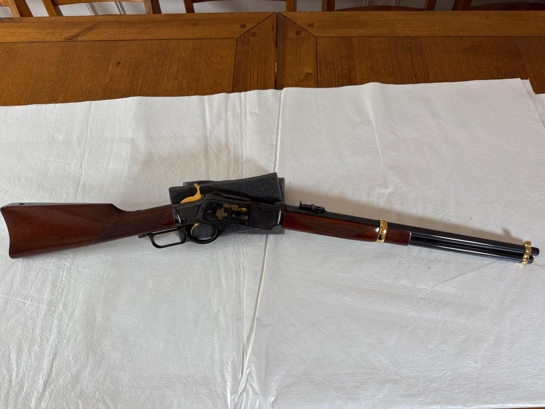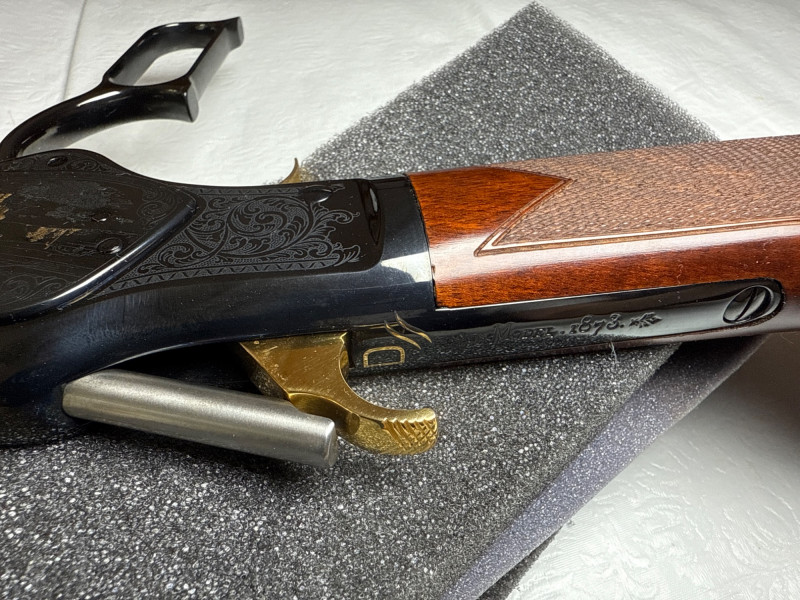 Crafted with a richly polished hardwood stock and steel barrel, this rifle mirrors the classic Old West design. While primarily a collector’s item, it’s typically chambered in .44-40 or similar calibers, maintaining the spirit of the original 1873 model.