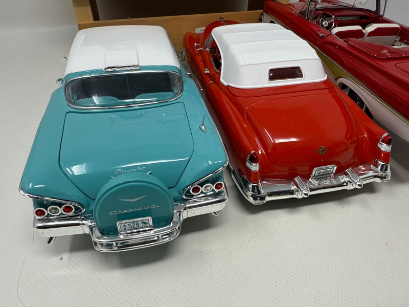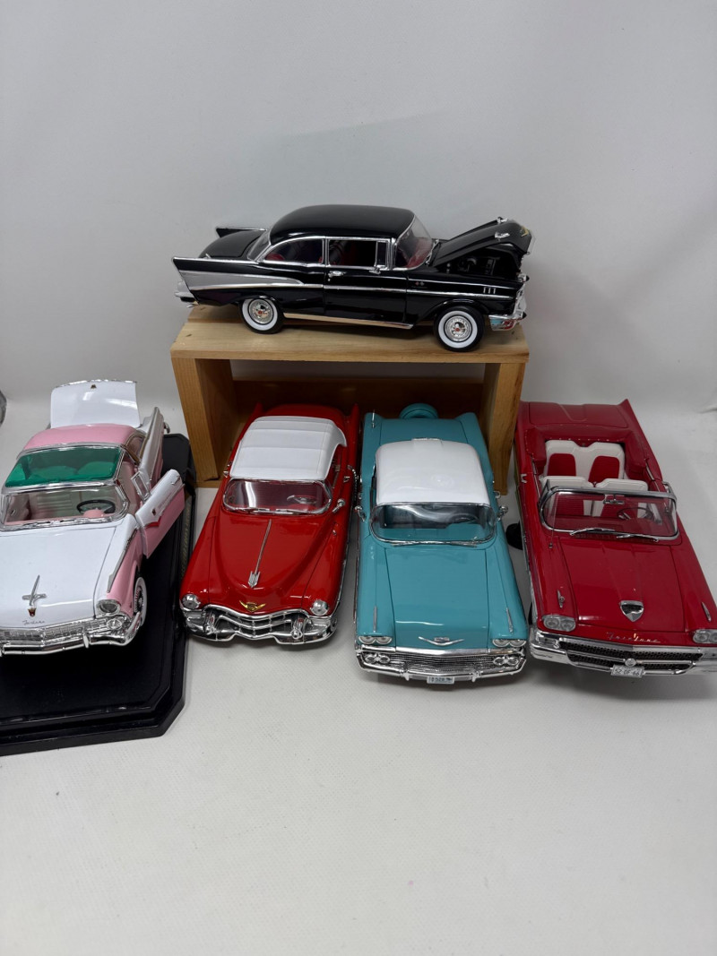 A themed assortment of 1/18 scale model cars from the 1950s, showcasing mid-century curves, chrome accents, and retro packaging. Condition: Gently used or display grade Era: 1950s vintage Ideal For: Toy collectors, auto history buffs Category: Collectibles/Automotive1950s 1/18 Scale Model Cars